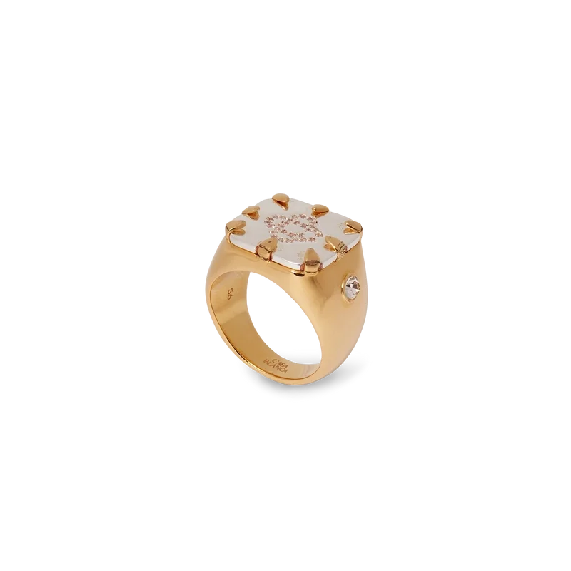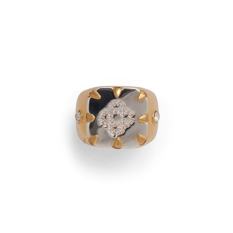 Inelul cu sigiliu Cc Logo este realizat din alamă placată cu aur, argint și cristale. Este completat cu detaliul emblematic al casei, logo-ul Cc interconectat, pe cap, împodobit cu cristale, iar pe corp are câte un cristal pe fiecare parte.