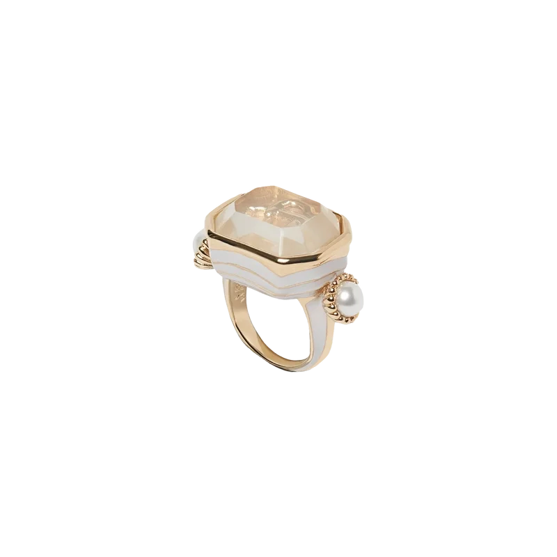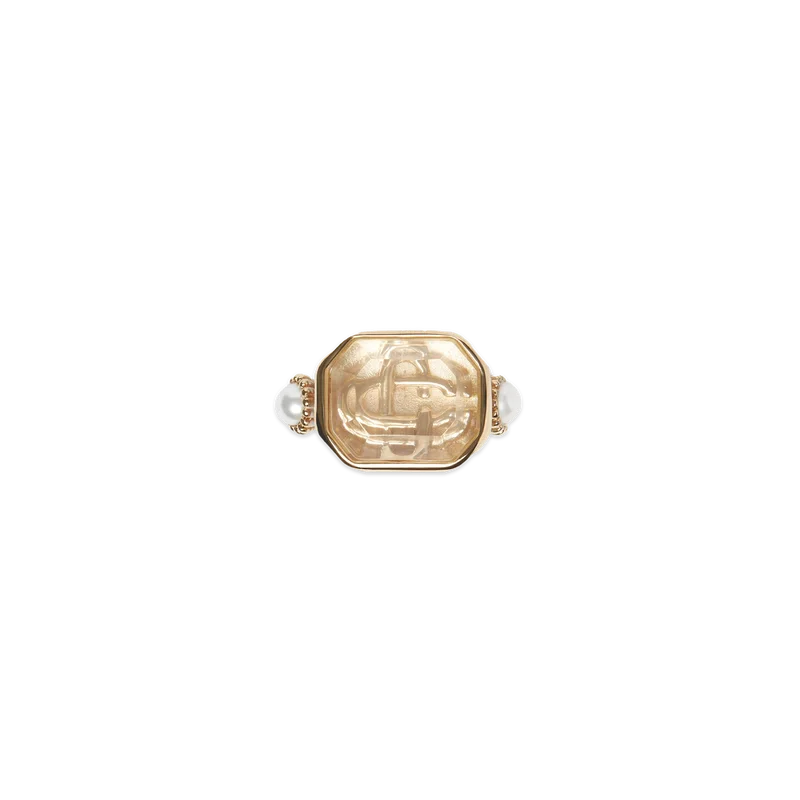 Inelul Gradient prezintă logo-ul diamant caracteristic al casei, cu detalii din perle.