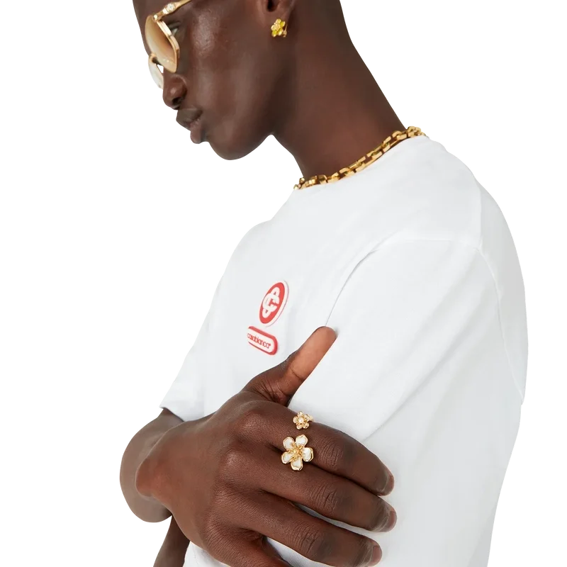 Inelul Flower este conceput în stilul a două flori de dimensiuni diferite și este realizat din alamă placată cu aur și email. Acest articol este livrat cu o pungă de protecție Casablanca, o cutie și un manual al produsului.