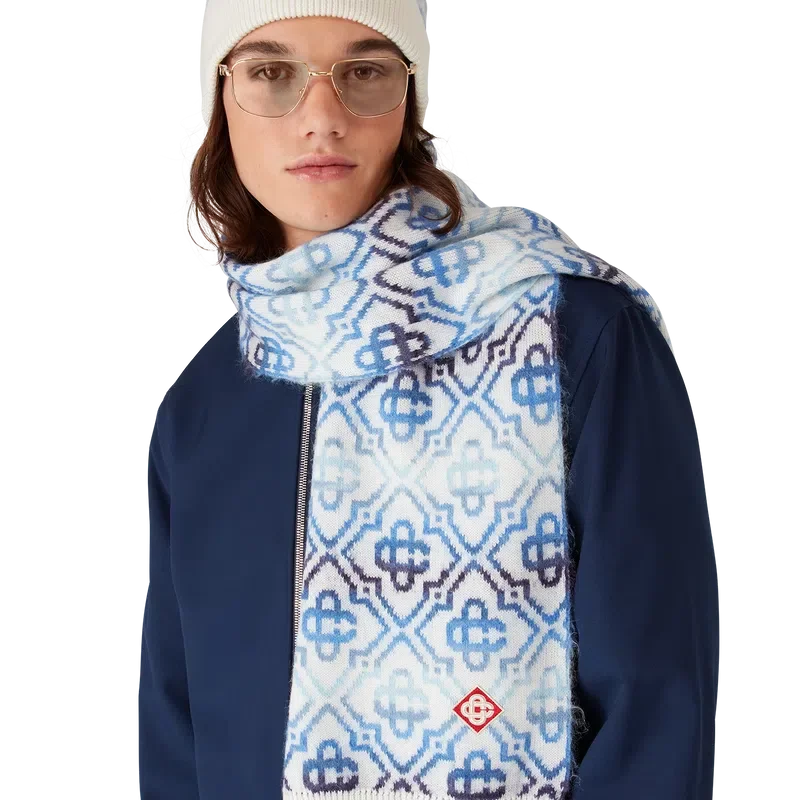 Eșarfa Space Dye Monogram este confecționată dintr-un amestec luxos de lână, prezentând Diamond Monogram, semnătura casei, realizată din fire vopsite în tehnica Space Dye, care creează profunzime și dimensiune. Finisată cu detalii cu margini cu nervuri.