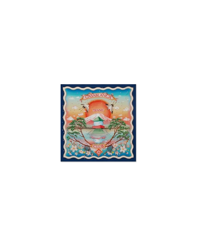 Eșarfa medie din mătase Tennis Club are un design imprimat, realizat din țesătură de mătase twill, cu grafica semnată a casei, folosind dispunerea noastră clasică, dar cu artă tradițională japoneză, ceea ce o face o piesă cu o poveste foarte puternică. Finisată cu o bordură cu valuri în dungi albastre și albe.