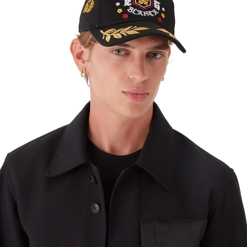 Șapca brodată cu laur BōSōZoku este un model clasic de baseball, confecționată din țesătură de bumbac twill, cu imprimeul sezonului, pentru care ne-am inspirat din subcultura japoneză BōSōZoku, una dintre temele noastre principale. Contrastul dintre elementele grafice și text ne-a părut foarte specific Casablanca. Dispunerea este neconvențională, dar compoziția este atent echilibrată, conferindu-i un aspect unic, dar armonios. Completată cu o cozoroc cu detaliu de frunză de laur aurie și cataramă reglabilă placată cu aur.