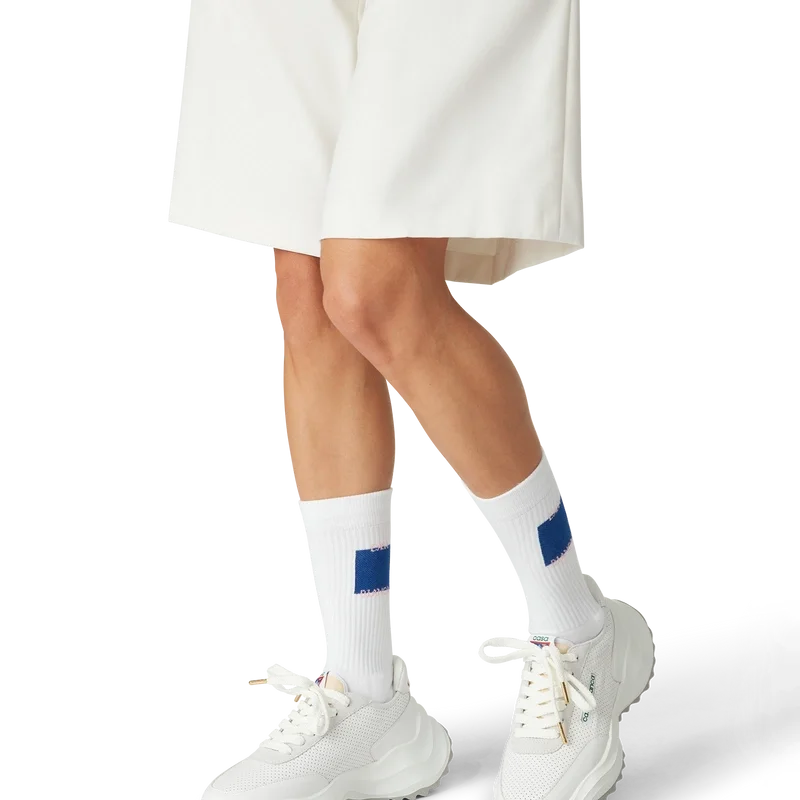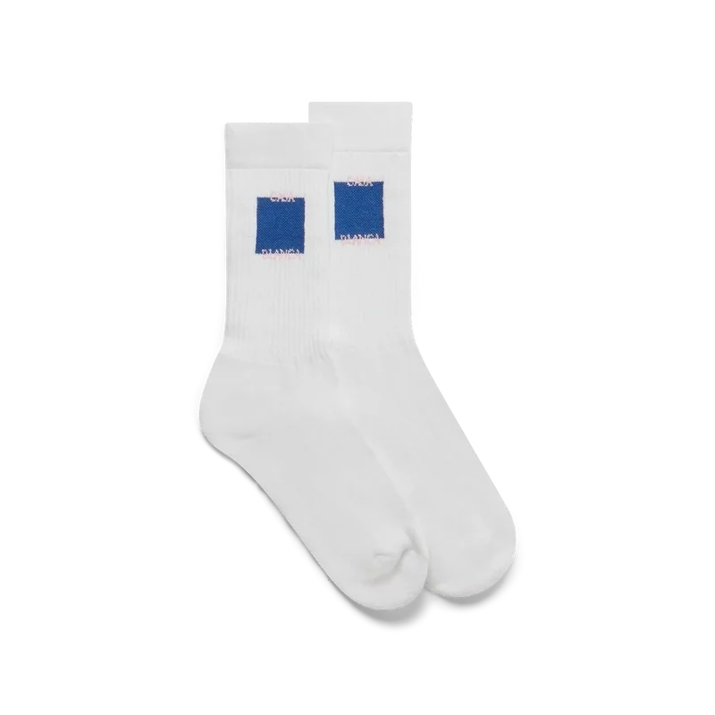 Șosetele Blue Casa Square sunt confecționate dintr-un material din amestec de bumbac și prezintă logo-ul casei suprapus cu un design pătrat albastru. Finisate cu borduri din tricot.