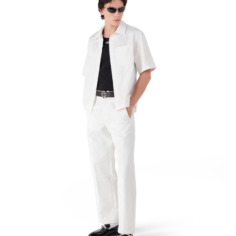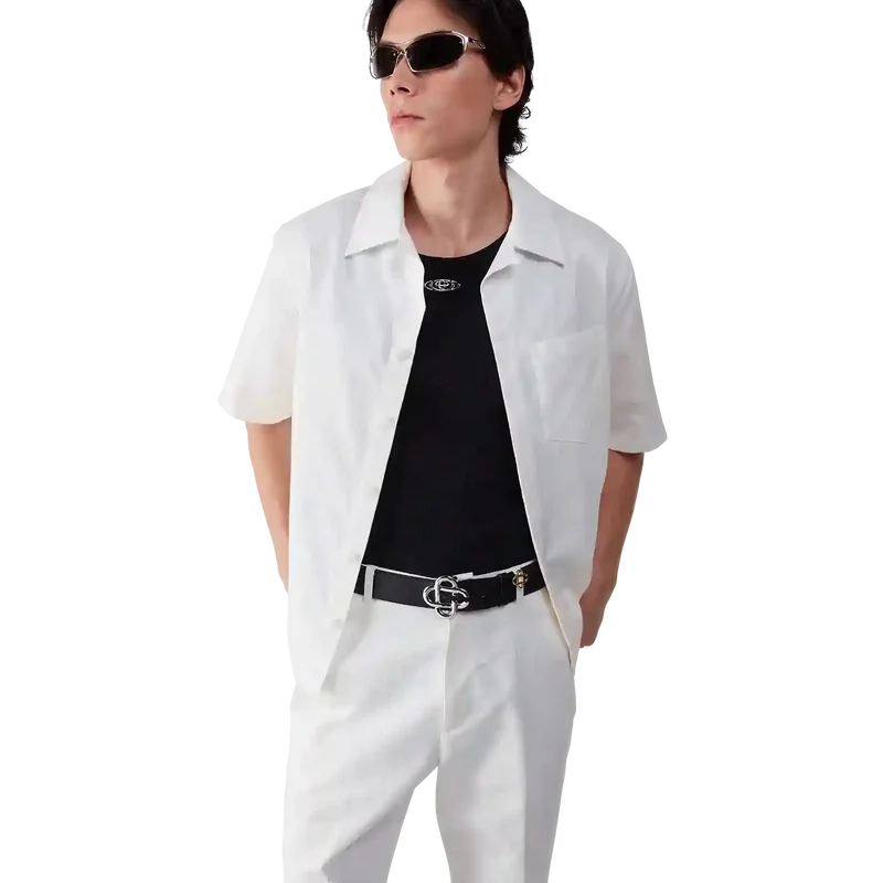 Cămașa albă cu mânecă scurtă și monogramă are un design rafinat și elegant, cu modelul iconic Monogram al casei. Este prevăzută cu guler, nasturi din corozo cu logo-ul intercalat CC și buzunar la piept.