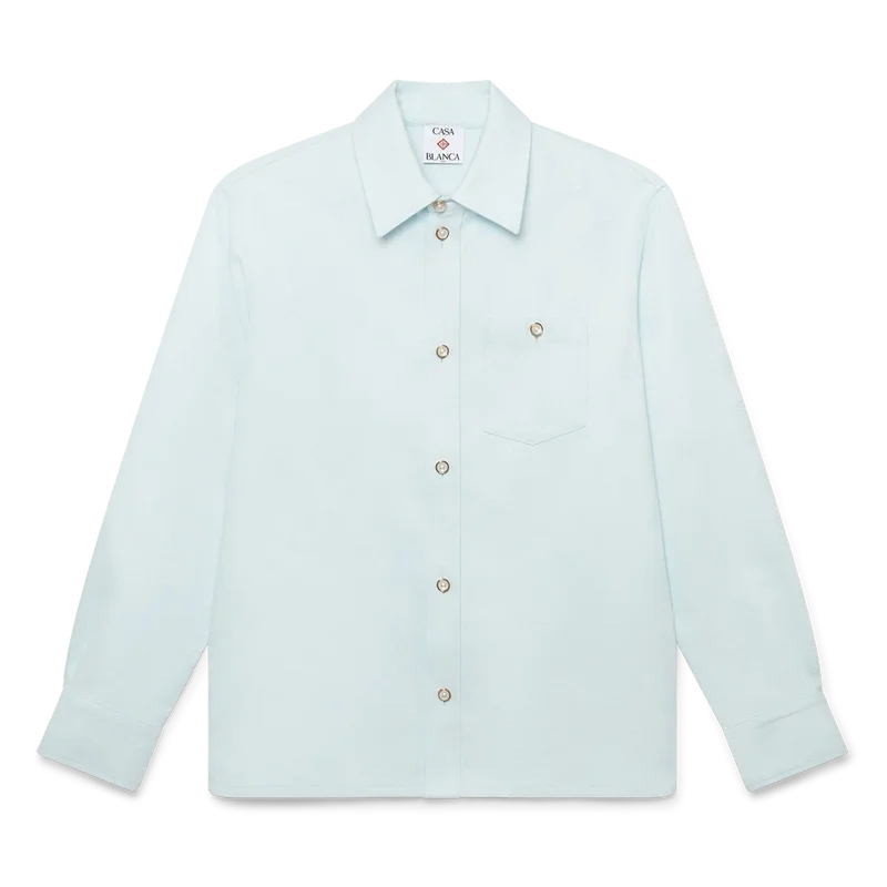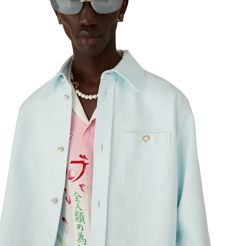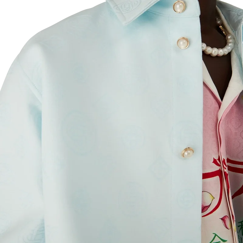 Cămașa cu mâneci lungi din bumbac cu monogramă are un design clasic, cu logo-ul Honeydew al casei repetat. Acest model diferă de celelalte monograme ale noastre, deoarece combină forme unice pentru a forma un model coerent. Completată cu guler în vârf, închidere cu nasturi, buzunar la piept și nasturi cu margine aurie și perle, caracteristici ale mărcii.