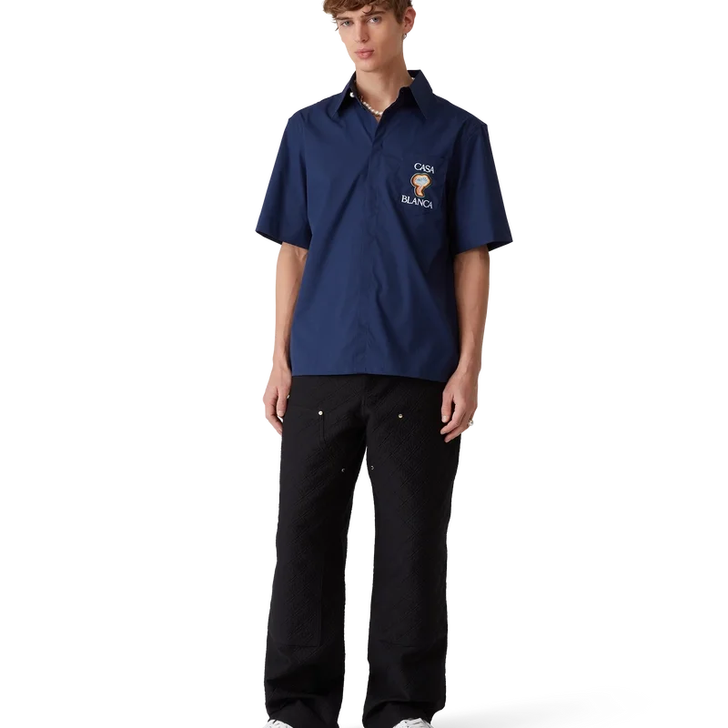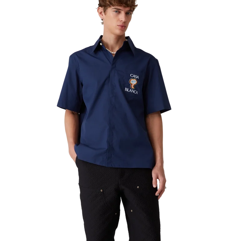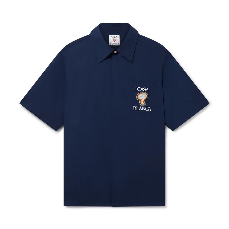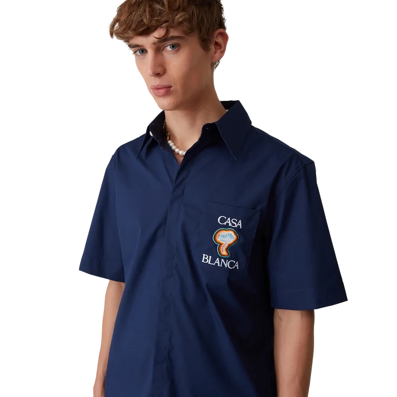 Cămașa Rainbow Mushroom este un model cu mâneci scurte, confecționată dintr-un material din amestec de poliester și prezintă un motiv sezonier inspirat de un element de design clasic – ciuperca – cu margini multicolore. Este completată de un buzunar la piept, un guler cu vârf, o închidere ascunsă cu nasturi din corozo cu logo-ul Cc intercalat și nasturele cu margini aurii și perle, semnătura casei, la guler.