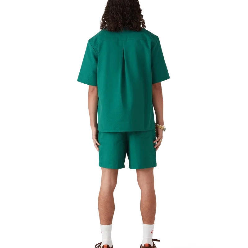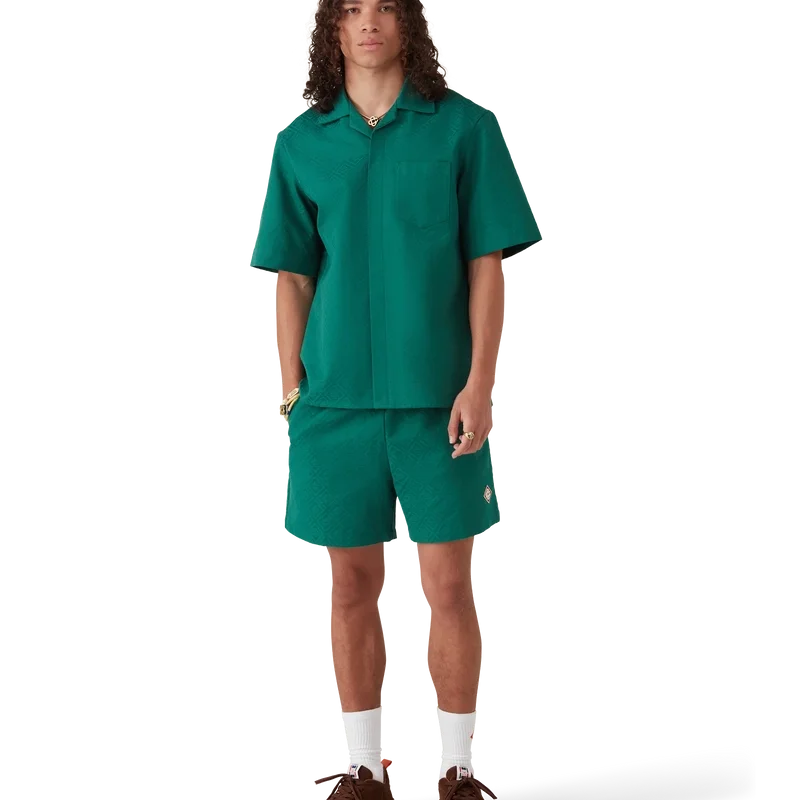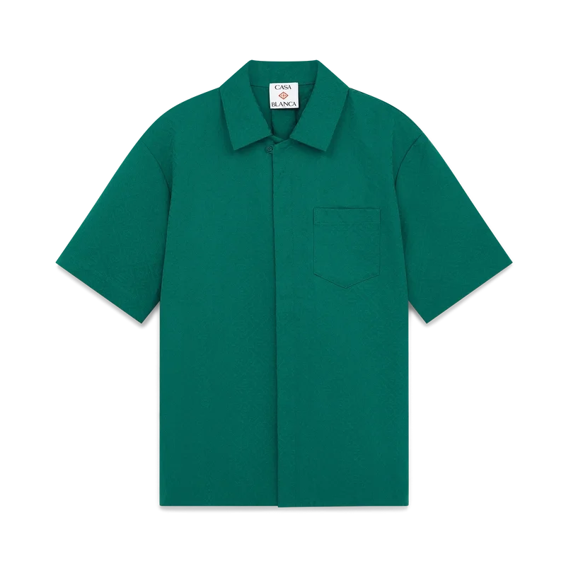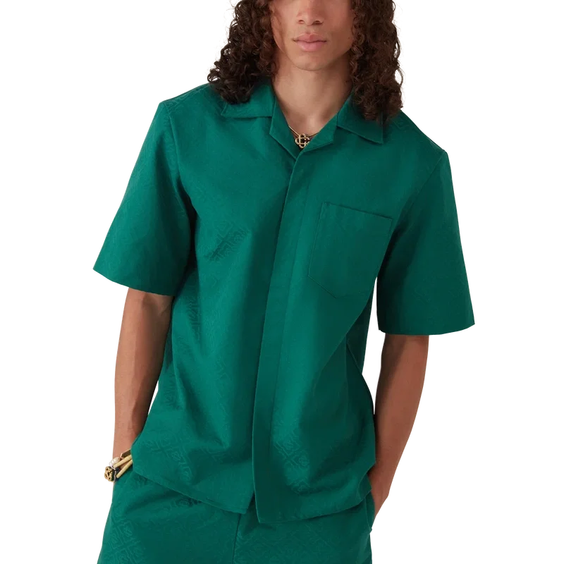 Cămașa din bumbac cu monogramă Jacquard cu mâneci scurte are un design clasic, fiind confecționată dintr-un material Jacquard din bumbac cu monogramă. Este prevăzută cu guler cubanez, închidere cu nasturi, nasturi din corozo cu logo-ul Cc intercalat și o plisătură inversată în spate.