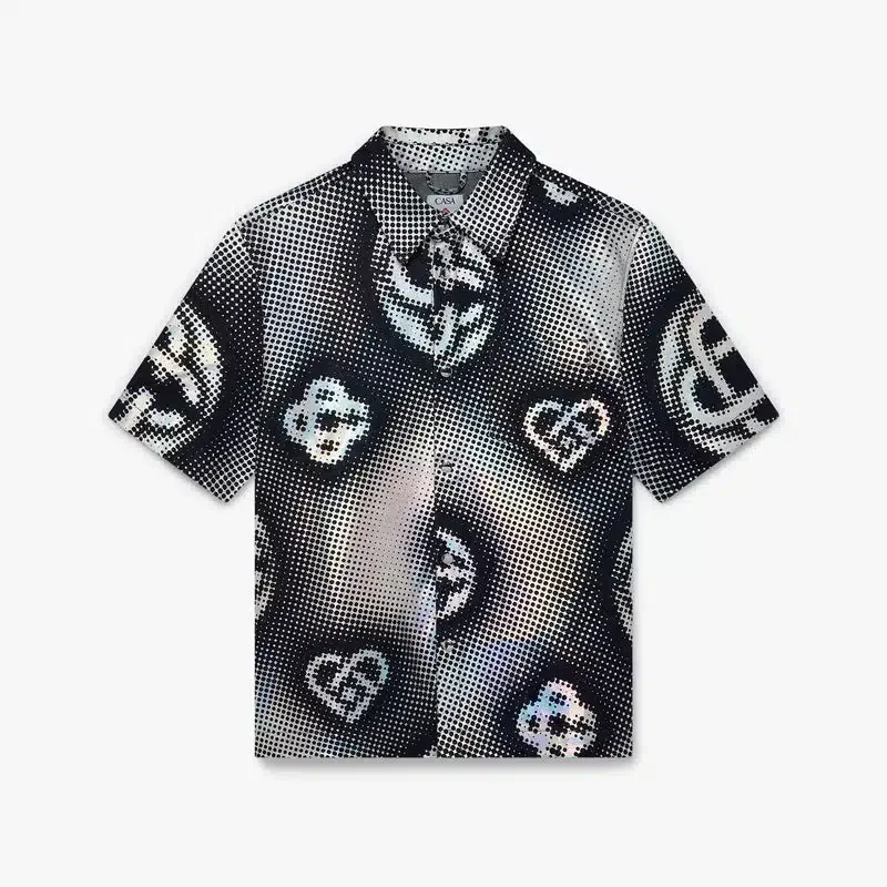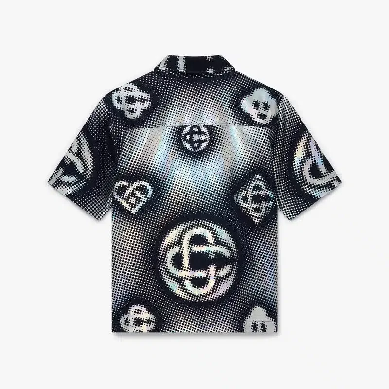 Cămășa din denim cu mâneci scurte și monogramă perlată are un design rafinat, fiind confecționată din țesătură de denim și prezentând monograma sezonieră a casei, care înglobează simbolurile mărcii de-a lungul anotimpurilor, de la clasicul diamant, inimă și zâmbetul CC. Efectul de semitonuri servește ca o combinație texturală care simulează o strălucire delicată ce adaugă profunzime. Completată cu guler, închidere cu nasturi, nasturi argintate cu sigla mărcii și un buzunar la piept.