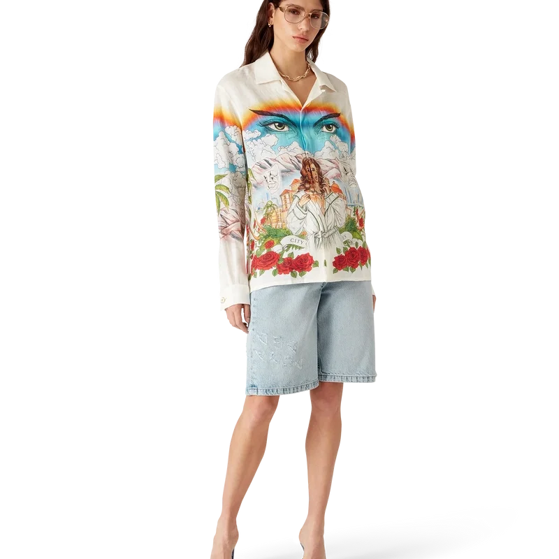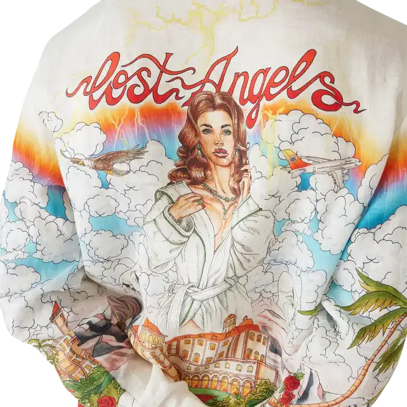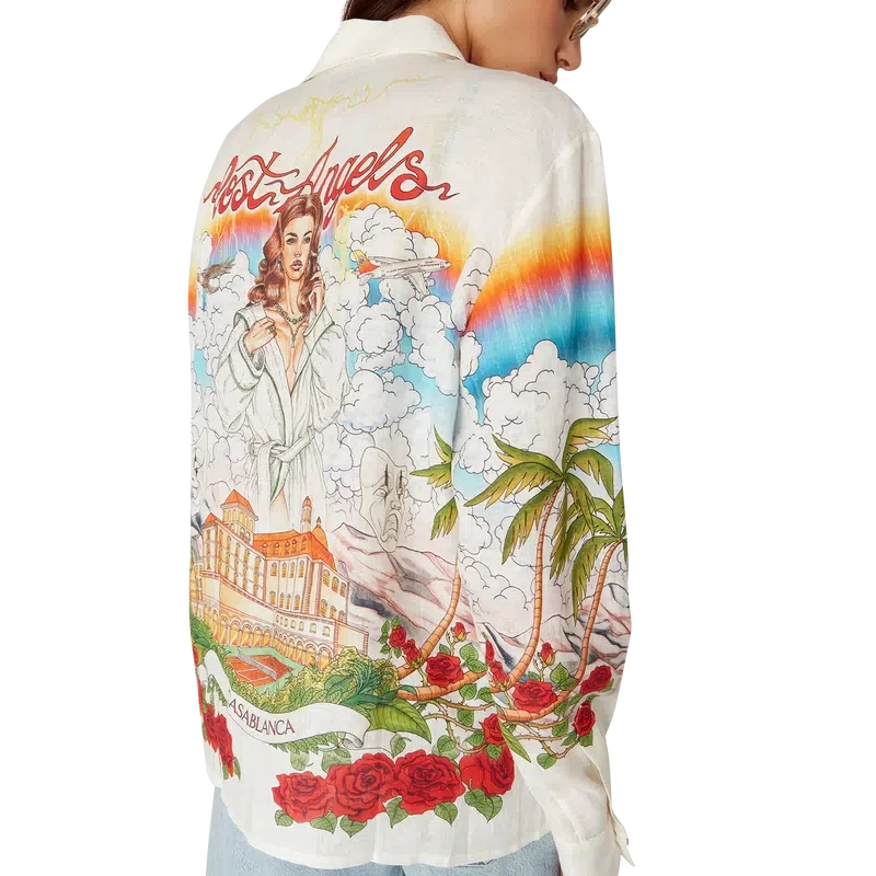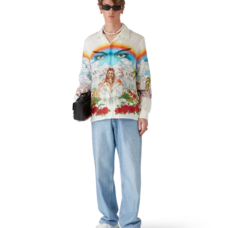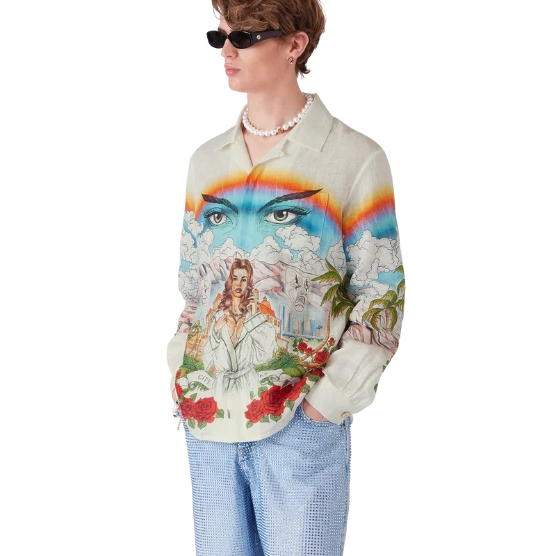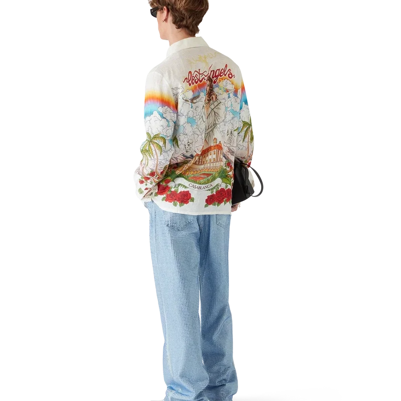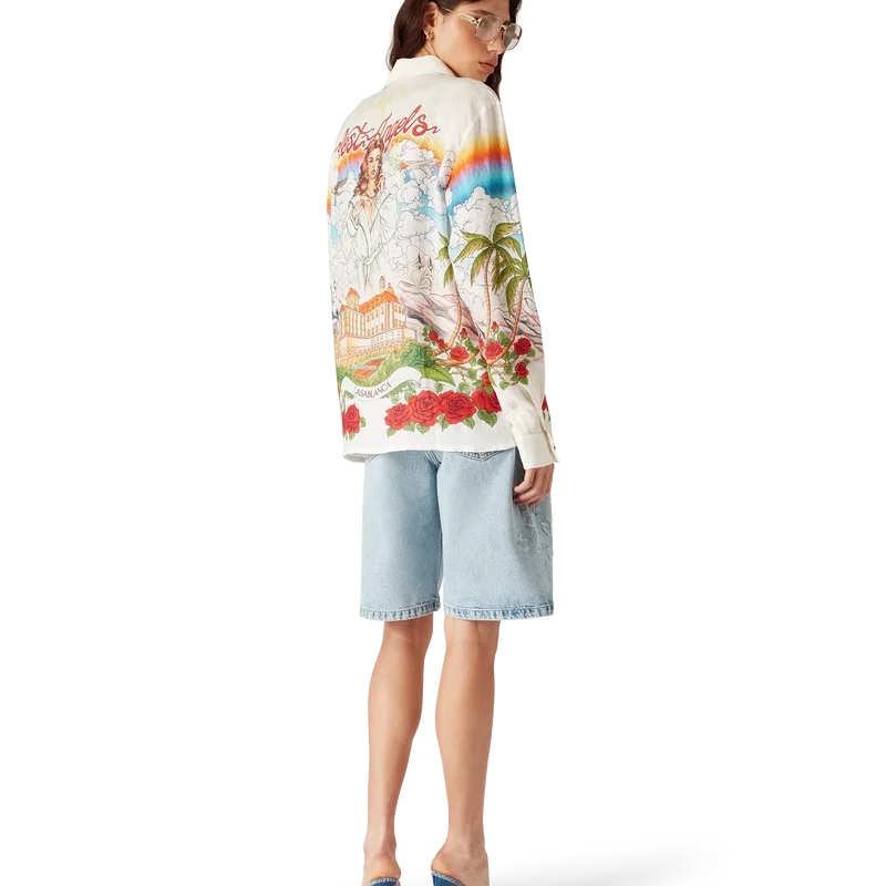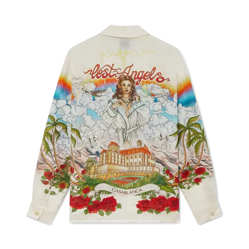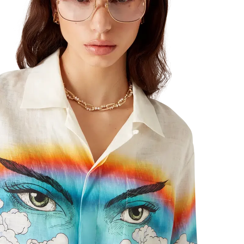 Cămașa din in Chateau este un model cu mâneci lungi și imprimeu, cu o grafică care face aluzie la povestea dramatică a unei tinere actrițe aspirante care stă la faimosul hotel Chateau Marmont din Los Angeles. Completată cu închidere cu nasturi ascunși, nasturi din corozo cu logo CC interconectat, guler cubanez și un nasture emailat cu margine aurie pe fiecare manșetă.