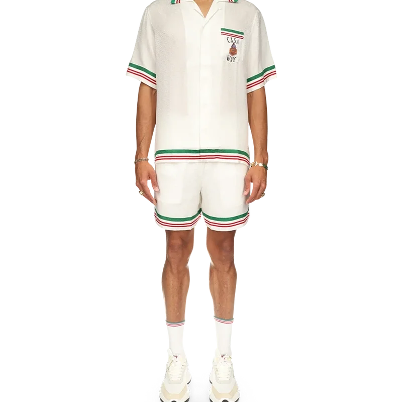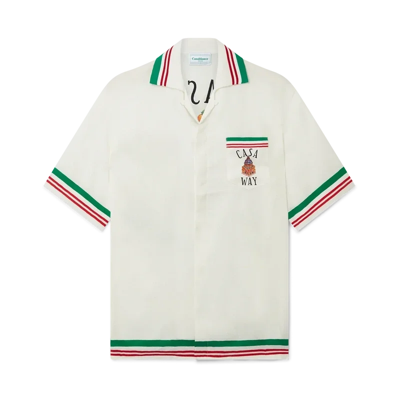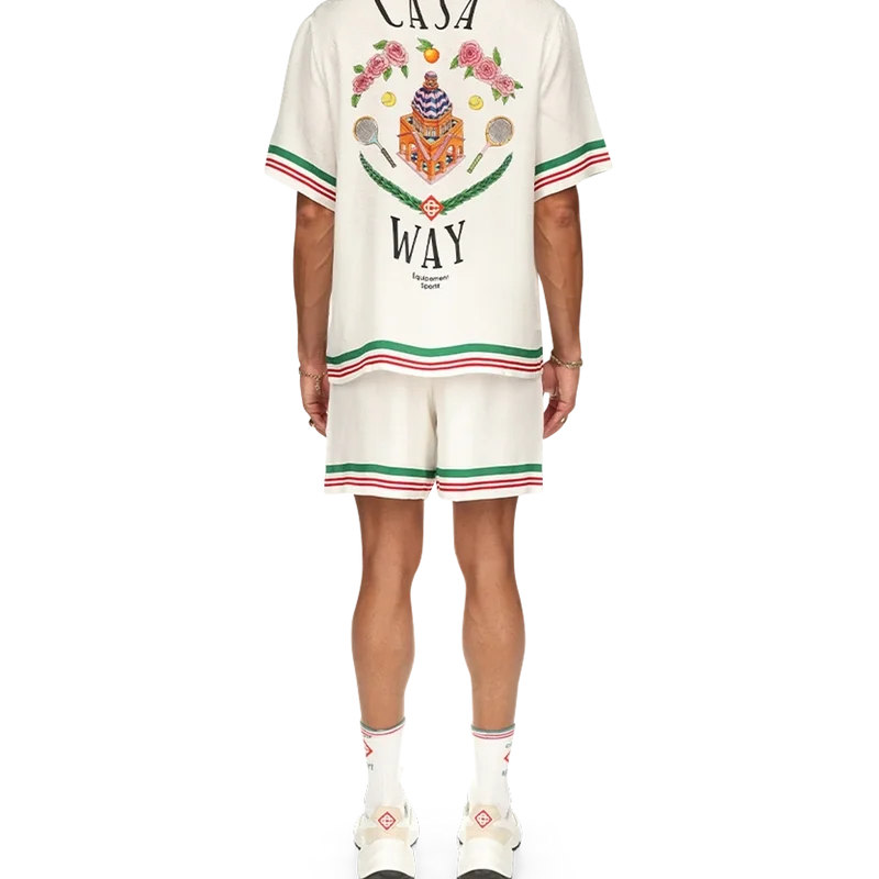 Cămașa din mătase cu guler tricotat Casa Way prezintă grafica semnată de casă, cu ilustrații serigrafice ale echipamentelor sportive și detalii florale reinterpretate pentru acest sezon. Confecționată din țesătura noastră semnată din mătase cu imprimeu Monogram, cu un guler din bumbac contrastant, concepută pentru o croială clasică.