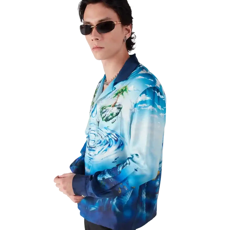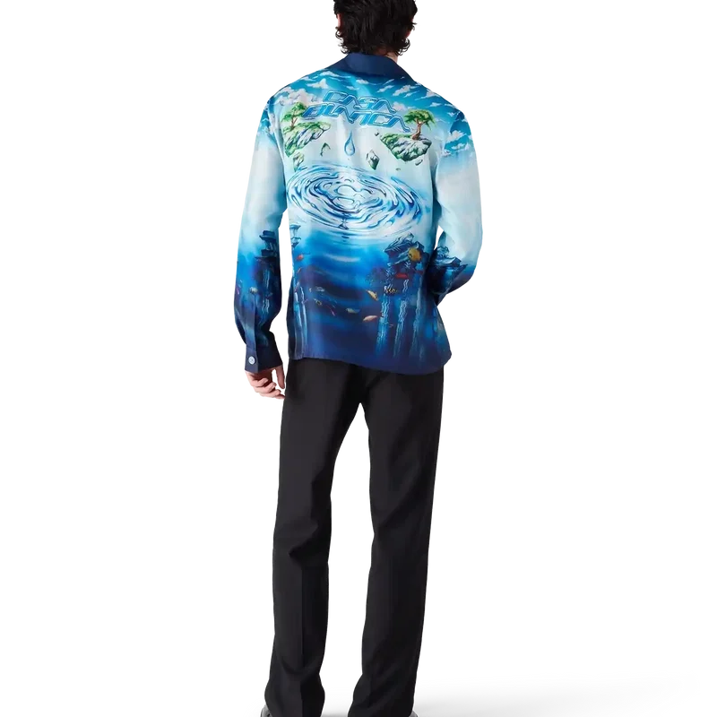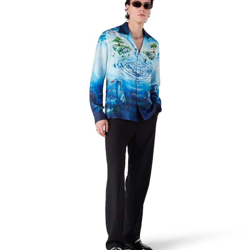 Cămașa cu mâneci lungi Lost Atlantis are un design rafinat, cu imprimeul artistic Water Atlantis al casei, care îmbină arta digitală și cea pictată manual. Logo-ul Cc interconectat este redat sub formă de valuri în apă, în timp ce partea inferioară a cămășii face referire la civilizația mitică a Atlantidei, îmbogățită cu faună exotică și comori ascunse. Completată cu închidere cu nasturi, nasturi cu logo-ul Cc întrețesut și nasturi smălțuiți cu margine aurie, semnătura casei, la manșete.