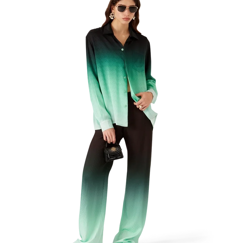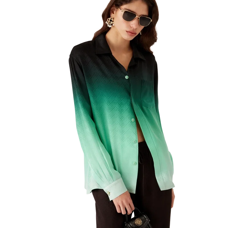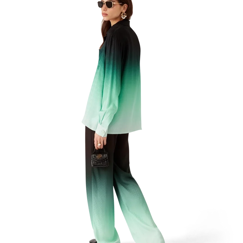 Cămașa din mătase jacquard Gradient Ping Pong are mâneci lungi și un imprimeu pe toată suprafața – prezentând un monogram clasic creat pentru prima noastră colecție japoneză, cu mingi de ping-pong în mișcare pe o traiectorie diagonală, repetată – confecționată dintr-o țesătură de mătase twill cu monogram. Completată cu guler cubanez, închidere cu nasturi, nasturi din corozo cu logo-ul Cc intercalat și nasturi smălțuiți cu margine aurie, caracteristici ale mărcii, la manșete.