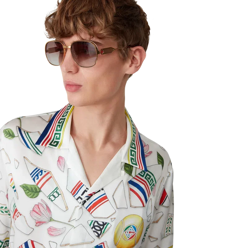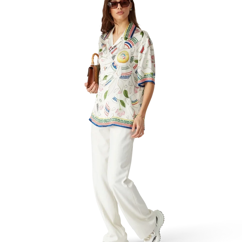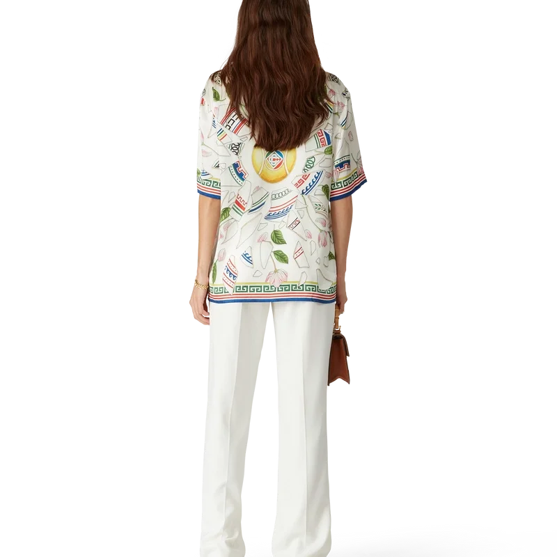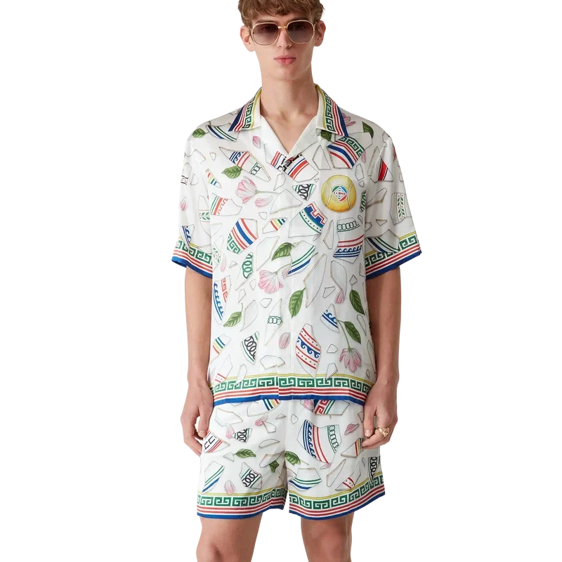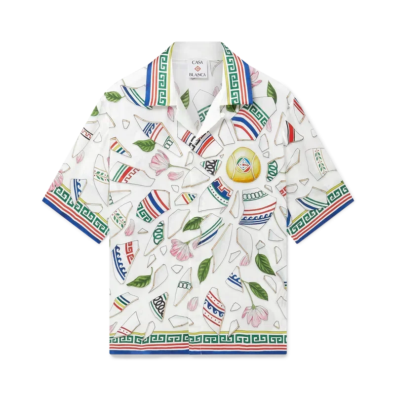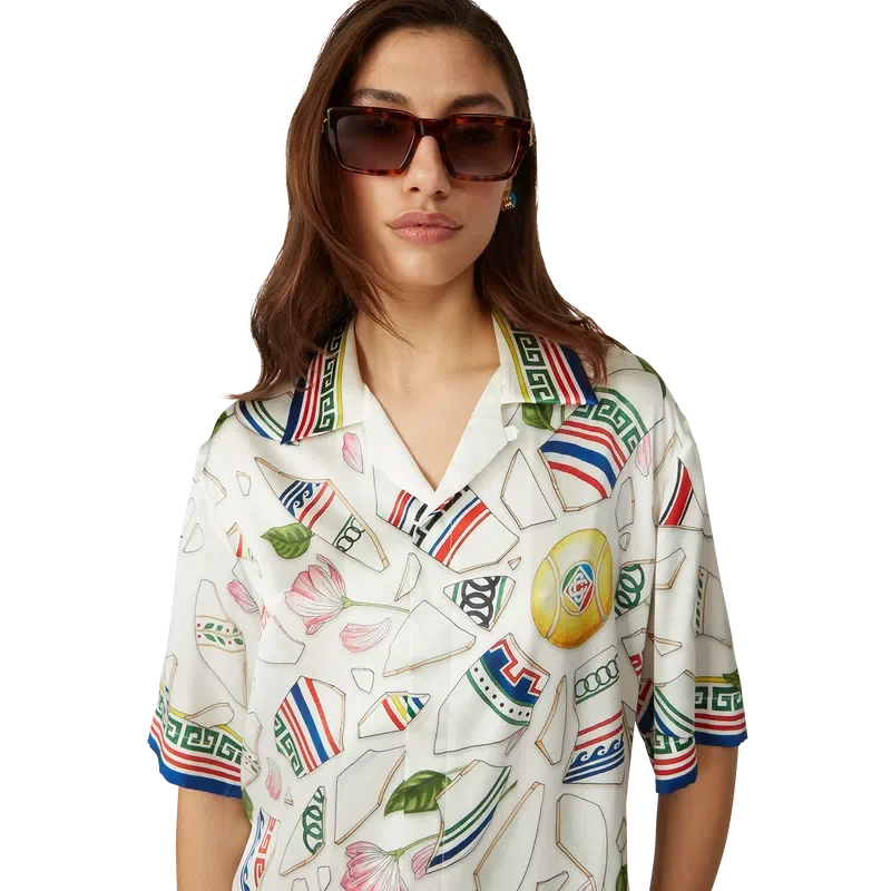 Cămașa din mătase Le Vase Brise este un model cu mâneci scurte și imprimeu pe toată suprafața, confecționată dintr-o țesătură din satin de mătase, prezentând opera de artă sezonieră a casei, care descrie repetarea fragmentelor unei vaze sparte. Completată cu nasturi din corozo cu logo-ul intercalat Cc, închidere cu nasturi, guler cubanez și detalii inspirate de modelul grecesc pe manșete, guler și tiv.