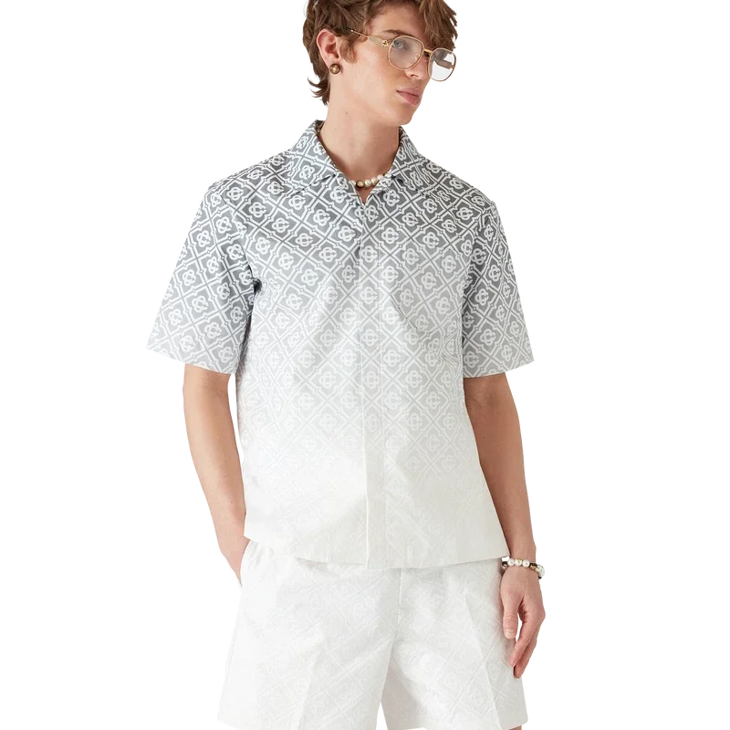 Cămașa Monogram Gradient este un model cu mâneci scurte și imprimeu, cu o siluetă clasică, confecționată dintr-un material din bumbac cu gradient Monogram, care prezintă Diamond Monogram-ul caracteristic al casei. Este prevăzută cu închidere cu nasturi, buzunar la piept și guler cubanez.