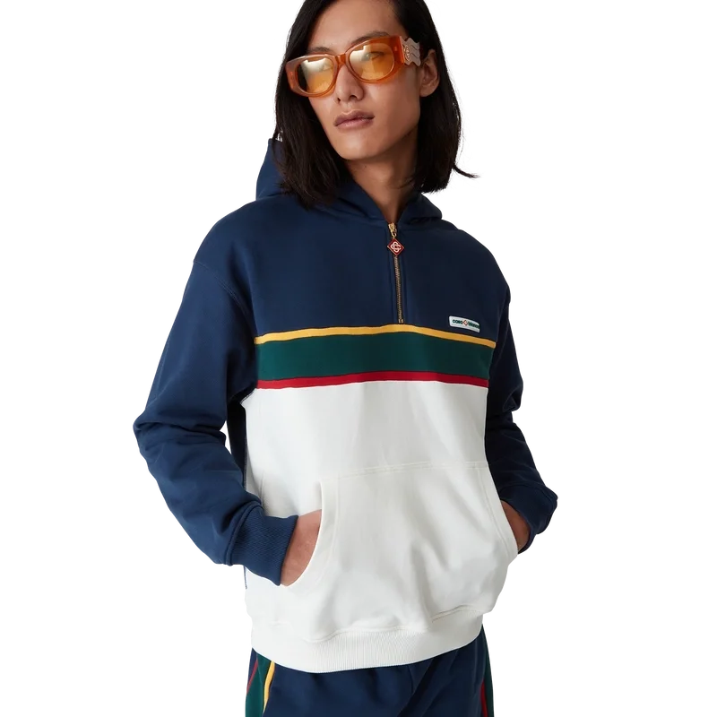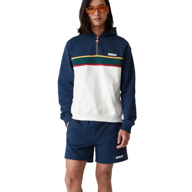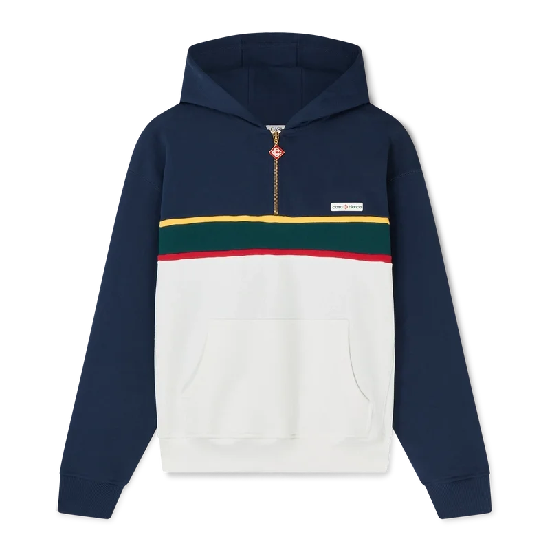 Hanorac cu glugă și fermoar pe un sfert, cu blocuri de culoare