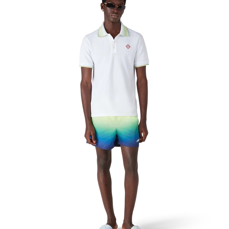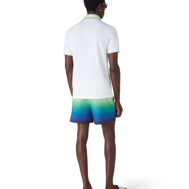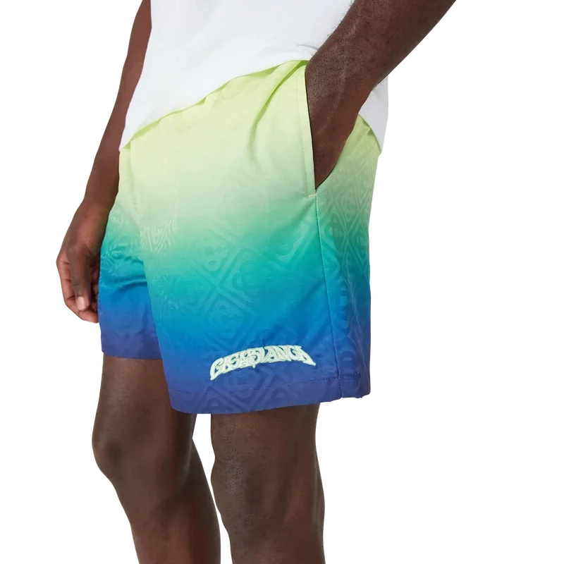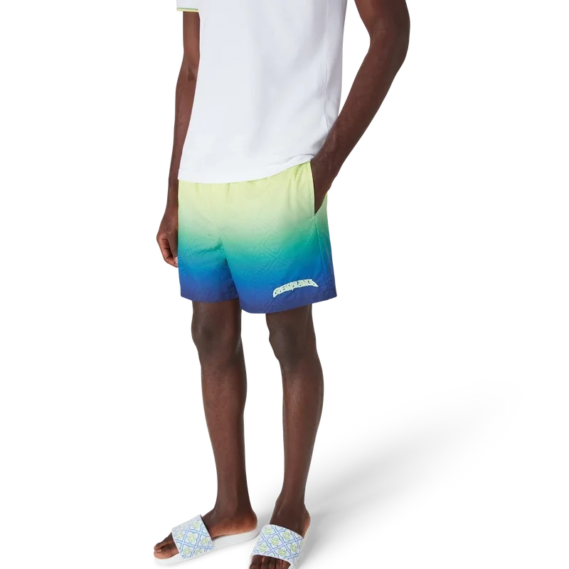 Pantalonii scurți de baie Gradient Monogram au un design tehnic rafinat, cu detalii în degrade. Sunt prevăzute cu o bandă elastică în talie, închidere cu șnur, buzunare laterale în cusătură și modelul Monogram caracteristic casei, care întruchipează eleganța sofisticată a stilului apras-sport.