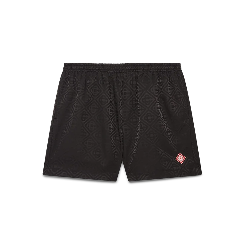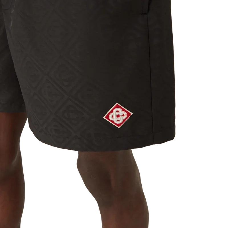 Pantalonii scurți de baie Monogram Jacquard sunt un model de costume de baie confecționat din țesătură tehnică pentru înot, cu logo-ul diamant caracteristic al casei. Prezintă o bandă elastică în talie, închidere cu șnur intern, căptușeală din plasă și buzunar interior.