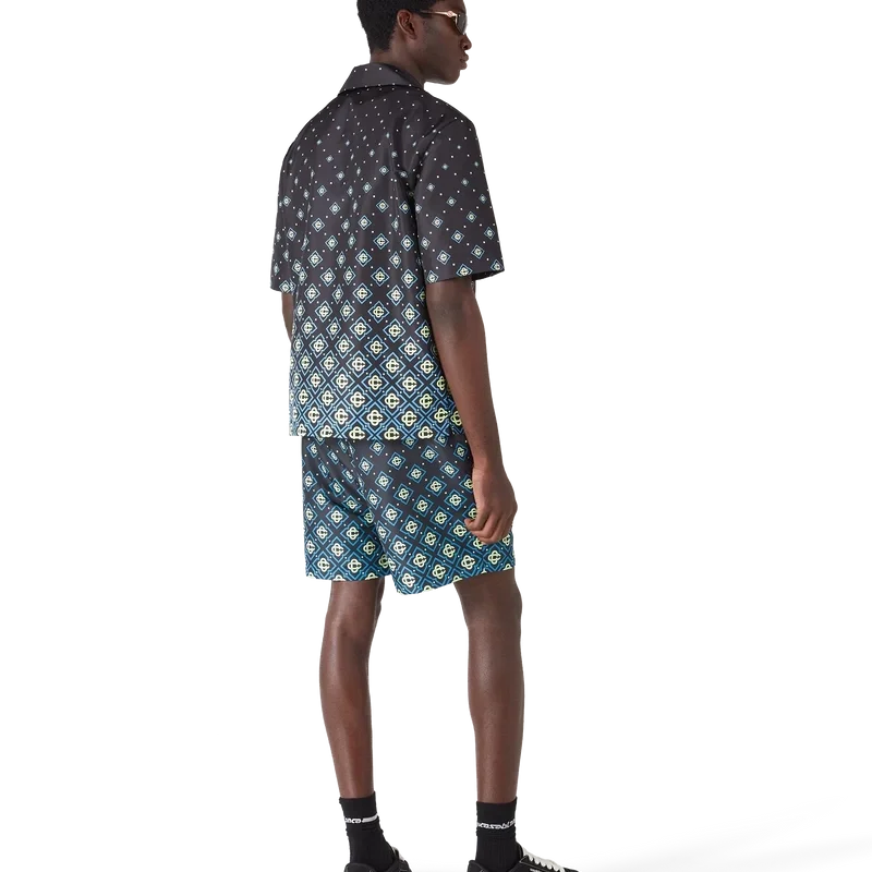 Pantalonii scurți de baie cu imprimeu Monogram negru degradat au un design tehnic rafinat, cu imprimeul Monogram al casei. Sunt prevăzute cu o bandă elastică în talie, buzunare laterale, țesătură tehnică pentru înot și detalii sofisticate care surprind abordarea rafinată a mărcii în materie de costume de baie.