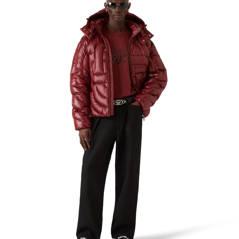 Jacheta matlasată este o piesă de îmbrăcăminte de exterior rafinată, cu Diamond Monogram-ul distinctiv al casei de modă pe față și pe spate, confecționată din țesătură matlasată cu umplutură din puf, cu mâneci lungi. Completată cu o glugă detașabilă, închidere cu fermoar cu un tab cu logo-ul diamant caracteristic, buzunare laterale în cusătură, un buzunar pe mânecă, tab-uri elastice reglabile la tiv și glugă cu capse cu logo-ul Cc interconectate și manșete cu bandă cu marca Casablanca.