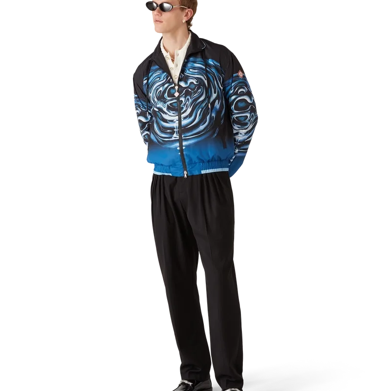 Jacheta Windbreaker cu logo Warped Ripple este un model cu mâneci lungi, care prezintă logo-ul diamant caracteristic casei și grafica Atlantis a sezonului — o combinație de elemente digitale și pictate manual, în care logo-ul CC este redat sub formă de valuri în apă. Completată cu guler înalt, închidere cu șnur, căptușeală, închidere cu fermoar cu tirant cu logo-ul Warped al casei de modă, precum și manșete și tiv elasticizate cu detalii contrastante la margini pe manșete, tiv și guler.