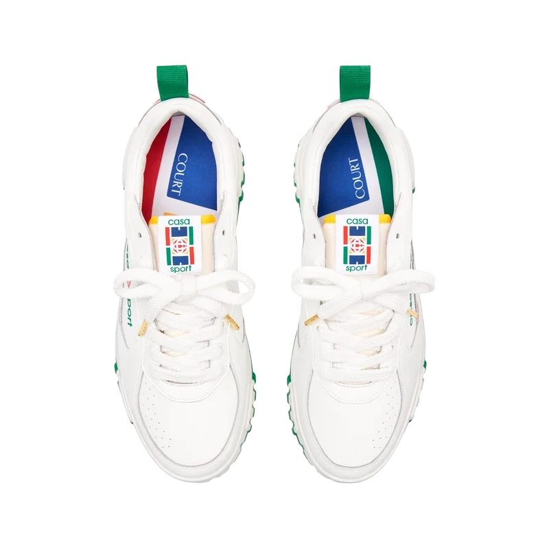 Limbajul de design al modelului Court Sneaker reflectă siluetele iconice ale anilor ’90. Culorile prezente pe toată talpa de cauciuc sunt o combinație între codurile rafinate ale tenisului și arhitectura clasică și creează o paletă unitară pe toată suprafața încălțămintei, cu accent pe culorile primare, contrastate de albul specific tenisului, pentru a crea o poveste cromatică cu accent sportiv.