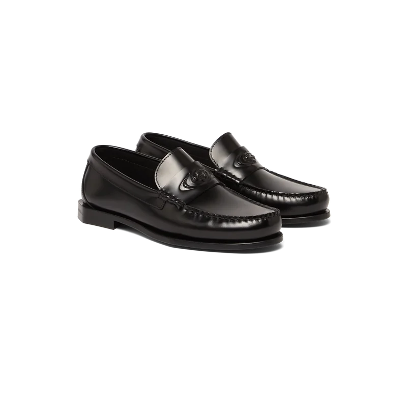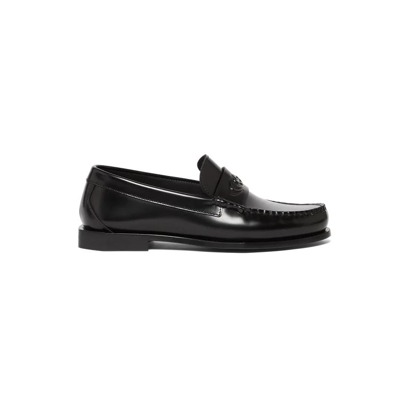 Mocasinii din piele neagră pentru bărbați sunt un model clasic fără șireturi, de tip slip-on, confecționați din piele de vițel italiană. Prezintă o curea distinctivă din piele peste vârf, căptușeală din piele, talpă din piele și un toc gros de 15 mm.
