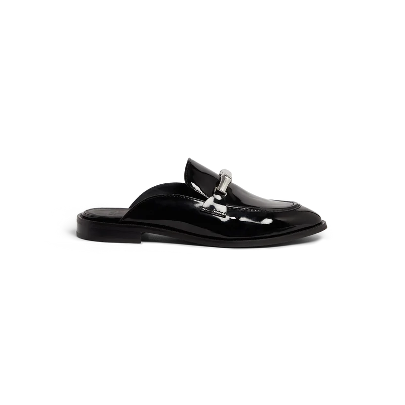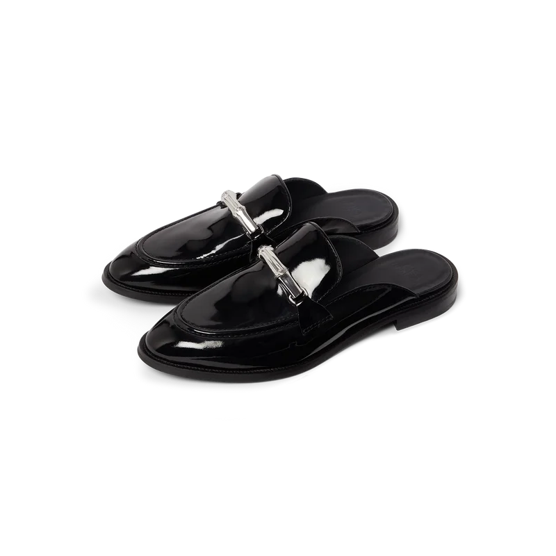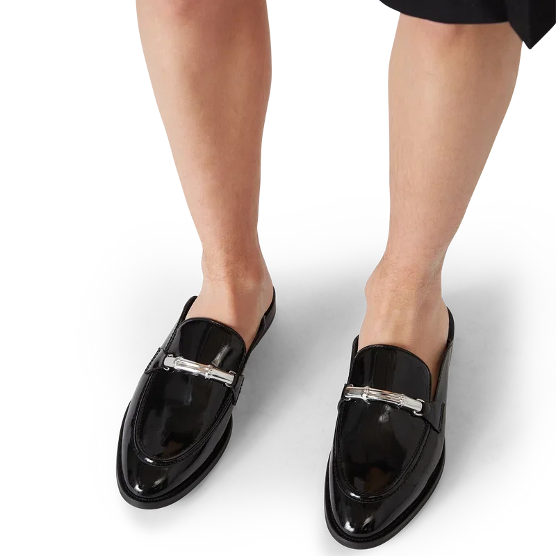 Mocasinii negri fără șireturi din bambus au un design plat, fără spate și cu vârful închis, confecționați din piele de vițel italiană. Sunt completați cu iconica noastră curea din bambus, căptușeală din piele, talpă din piele, accesorii placate cu aur și un toc gros de 10 mm.