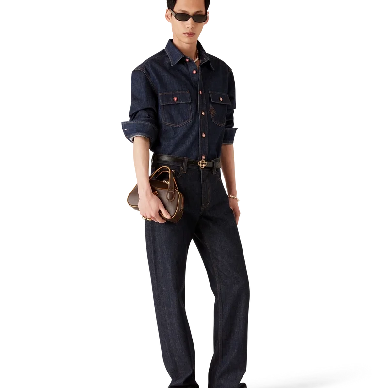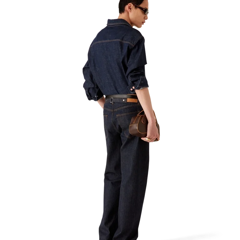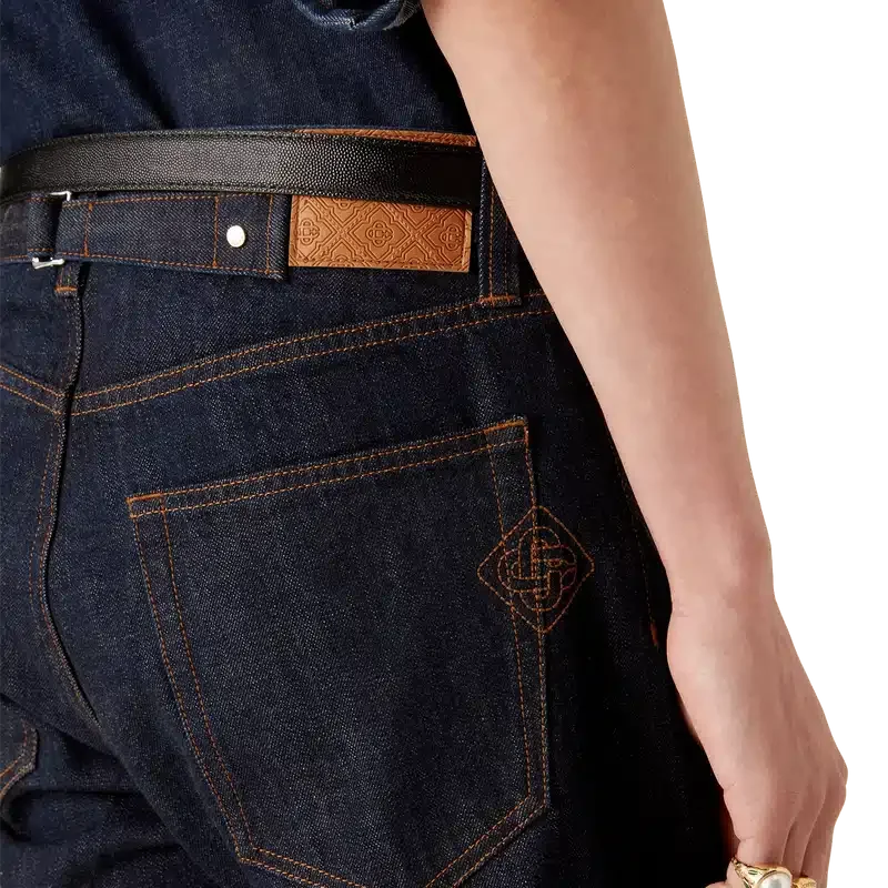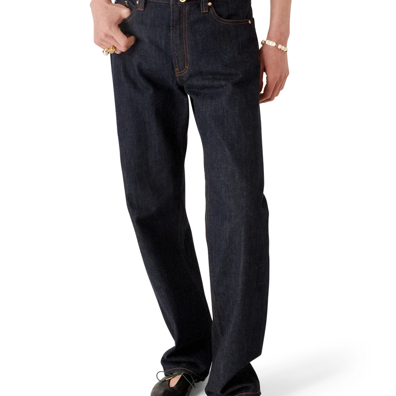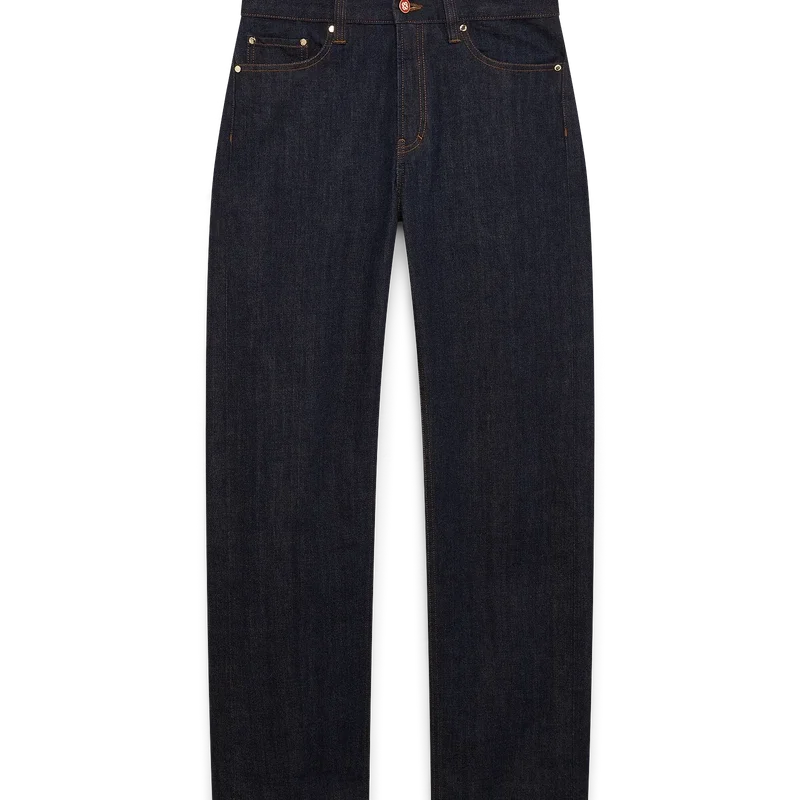 Blugii Laurel Selvedge Denim au un design cu croi drept, fiind confecționați din țesătură de denim din bumbac. Sunt prevăzuți cu bucle pentru curele, buzunare față și spate, închidere cu fermoar și accesorii metalice placate cu aur cu logo.