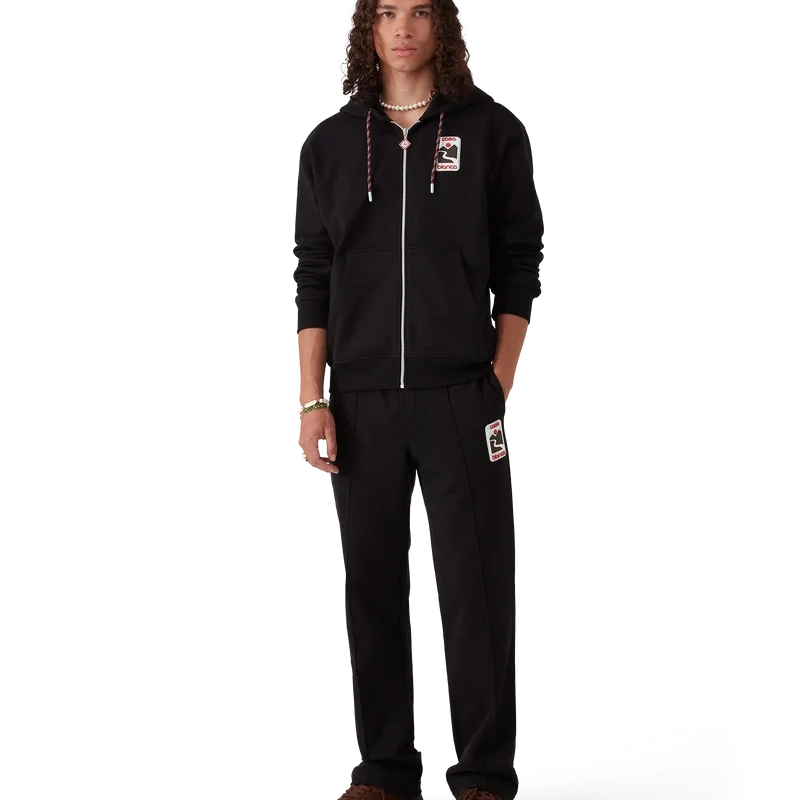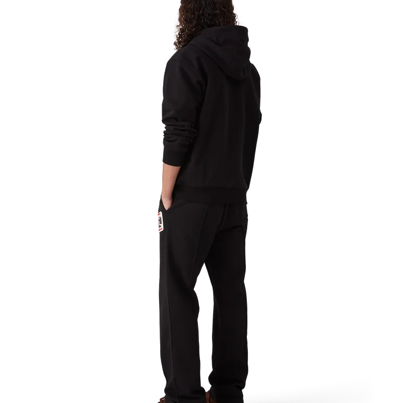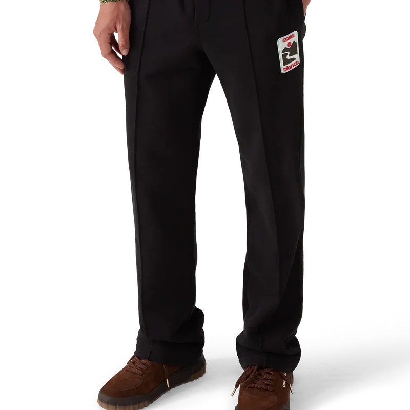 Pantalonii de trening Sunset Valley au un design cu croi drept și sunt confecționați din țesătură de bumbac organic. Prezintă o bandă elastică în talie, șnur de strângere cu capete aurii, cusături plisate pe partea din față, buzunare în cusătură și un buzunar aplicat în spate.