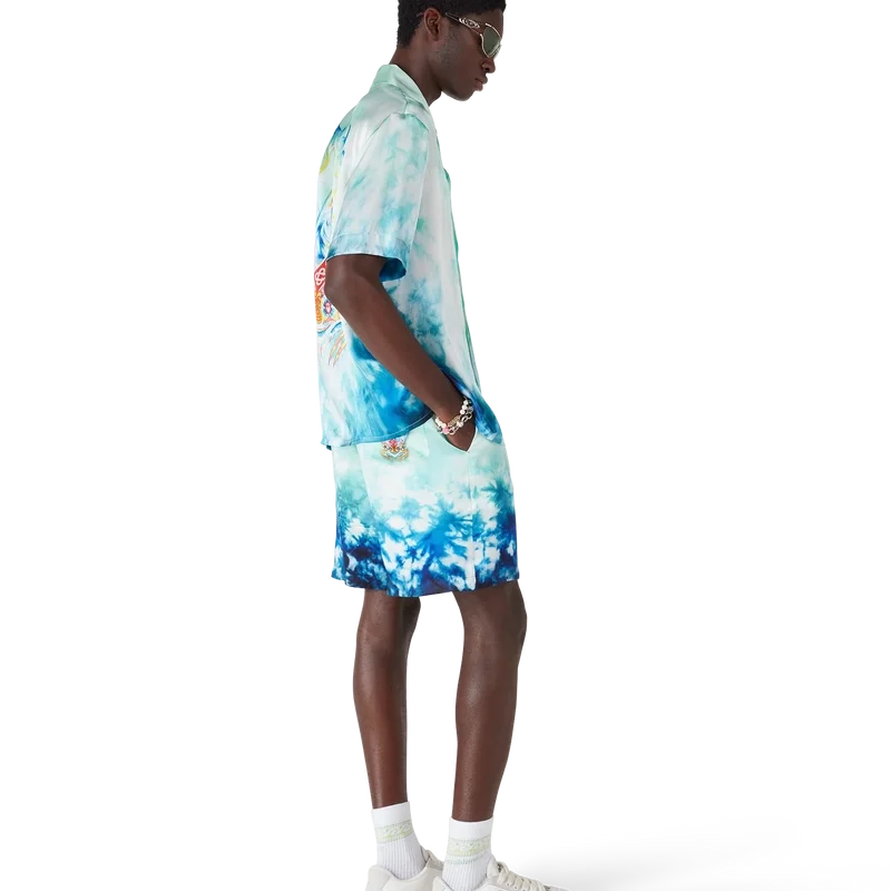 Pantaloni scurți Surf Lotus au un design clasic, cu cinci plăci de surf dispuse în forma unei flori de lotus, însoțite de o mască Tiki împodobită cu orhidee, creând un motiv psihedelic cu un amestec vibrant de culori. Completate cu o bandă elastică în talie, închidere cu șnur, buzunare laterale, un buzunar aplicat în spate și detalii sofisticate care întruchipează estetica sport-leisure rafinată a mărcii.