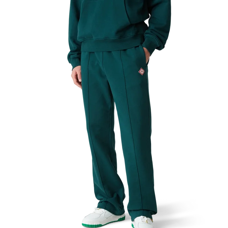 Pantalonii de trening Jacquard Monogram au un design clasic în nuanța de verde caracteristică casei. Sunt prevăzuți cu logo-ul Pearl Diamond, cordon de strângere cu vârfuri aurii, buzunare laterale în cusătură și un buzunar aplicat în spate.