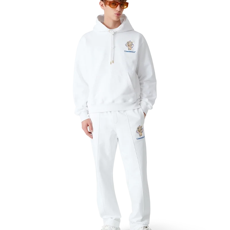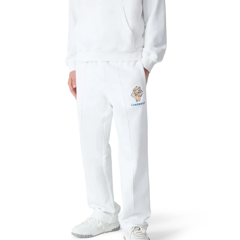 Pantalonii de trening Diamond Column au un design clasic, fiind confecționați din țesătură de bumbac organic și prezentând iconografia casei de modă reprezentată de o coloană desenată cu creionul. Sunt prevăzuți cu cordon de strângere cu capete aurii, buzunare laterale în cusătură și un buzunar aplicat în spate.