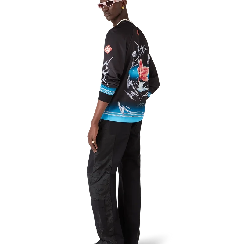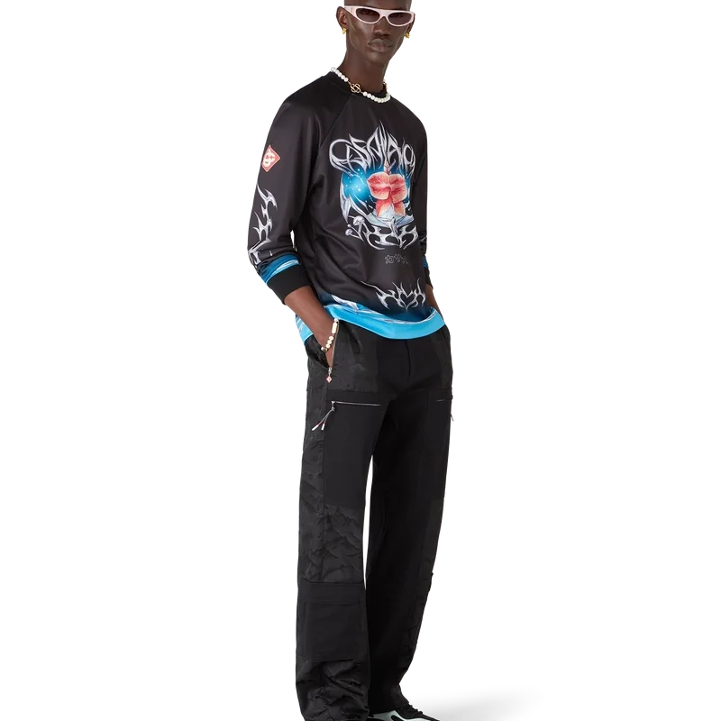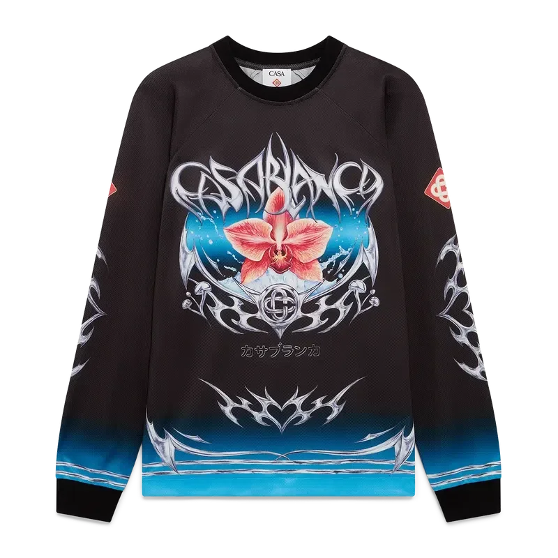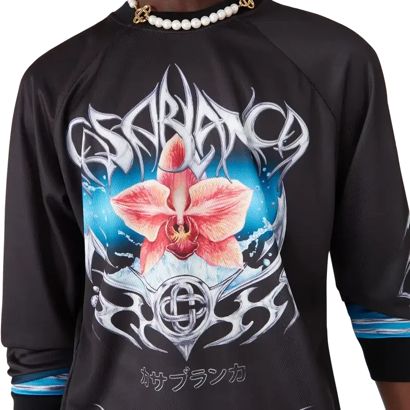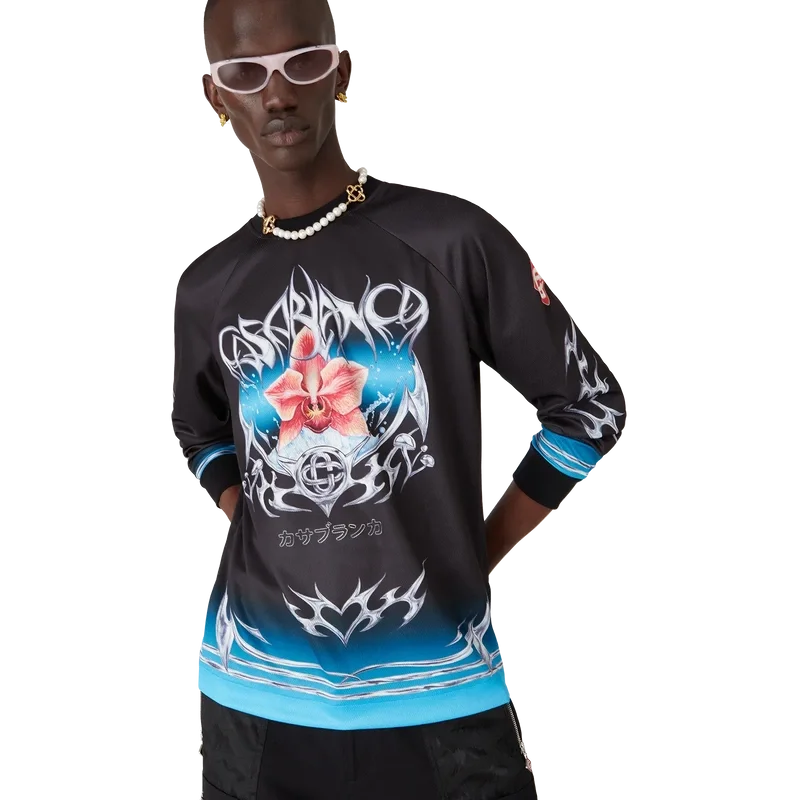 Tricoul de fotbal cu mâneci lungi Blade are un design imprimat cu grafica Blade din acest sezon, care joacă cu contrastul dintre două sentimente opuse – ascuțimea lamei și cromul rece, argintiu, contrastând cu căldura naturii, precum tonurile îndrăznețe de roz și roșu ale unei flori de orhidee.