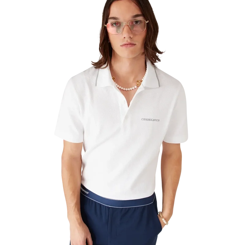 Tricoul polo Embossed Laurel este un model rafinat cu mâneci scurte, confecționat din țesătură piqué texturată, cu motivul Laurel caracteristic casei. Completat cu guler, placket cu trei nasturi, nasturi Corozo cu logo-ul Cc intercalat și manșete cu nervuri.