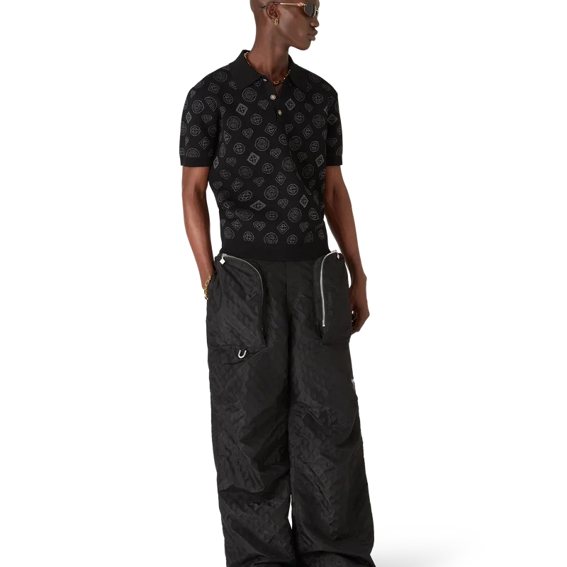 Tricoul polo Monogram Jacquard este un model cu mâneci scurte, care prezintă motivul Monogram iconic al casei. Acest model diferă de monogramele noastre clasice, deoarece prezintă o varietate de forme și icoane amestecate pentru a forma un model coerent. Completat cu închidere cu nasturi, nasturi emailate cu margine aurie cu logo-ul Cc interconectat, guler, manșete, tiv și placket din tricot.
