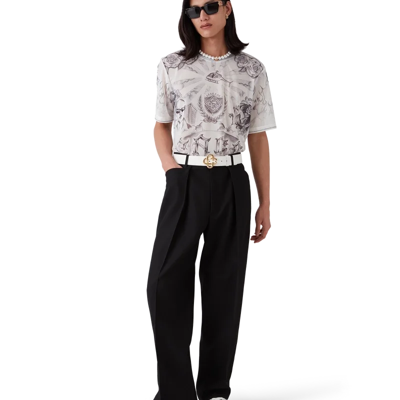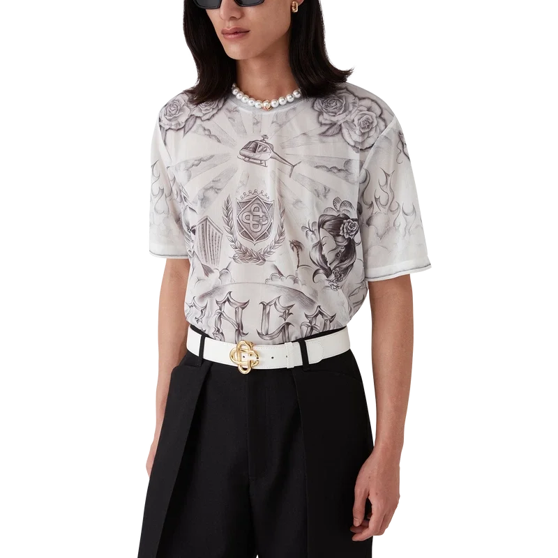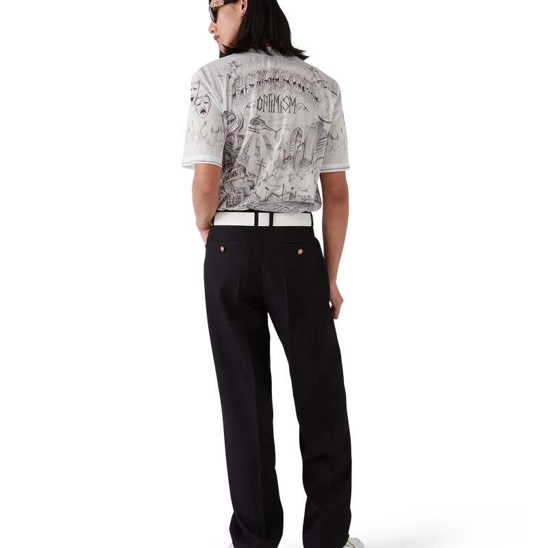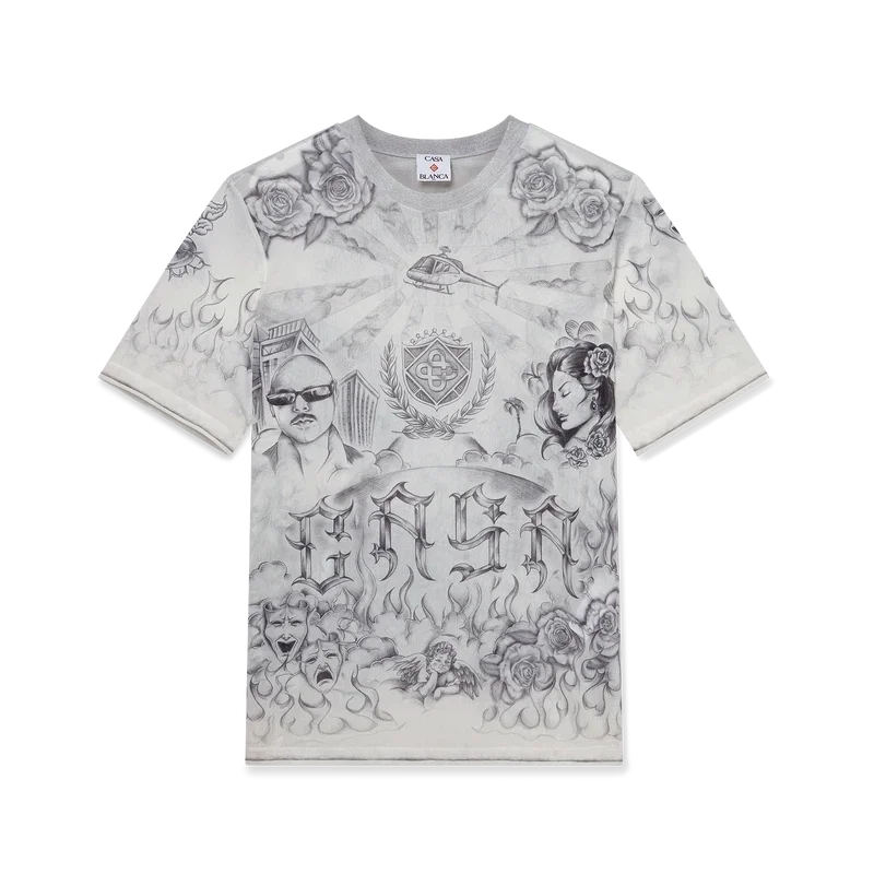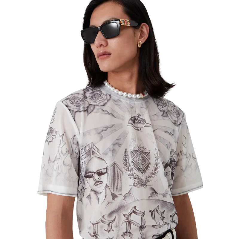 Tricoul Tattoo Mesh are pantaloni scurți și este confecționat dintr-un material tip plasă imprimat cu motivele artistice ale sezonului, inspirat de scena cartierului La, făcând referire la bogata cultură a tatuajelor și la cernelurile gri și negre folosite în aceste tatuaje. Este completat de un guler rotund clasic.