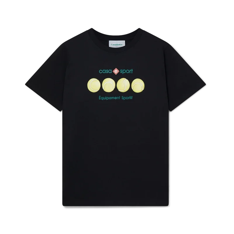 Tricou din bumbac organic serigrafiat Casa Sport Tennis Balls prezintă un design sezonier care încorporează iconografia specifică a casei de modă, inspirată de tenis și de Casa Sport. Completat cu guler rotund clasic, mâneci scurte și etichetă cu marca Casablanca Paris, conceput pentru o croială lejeră.