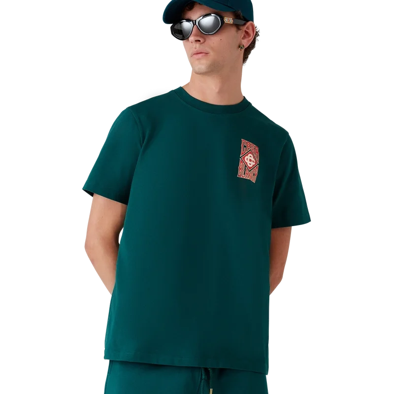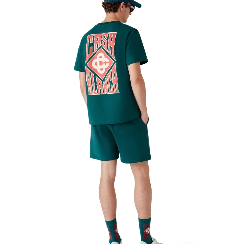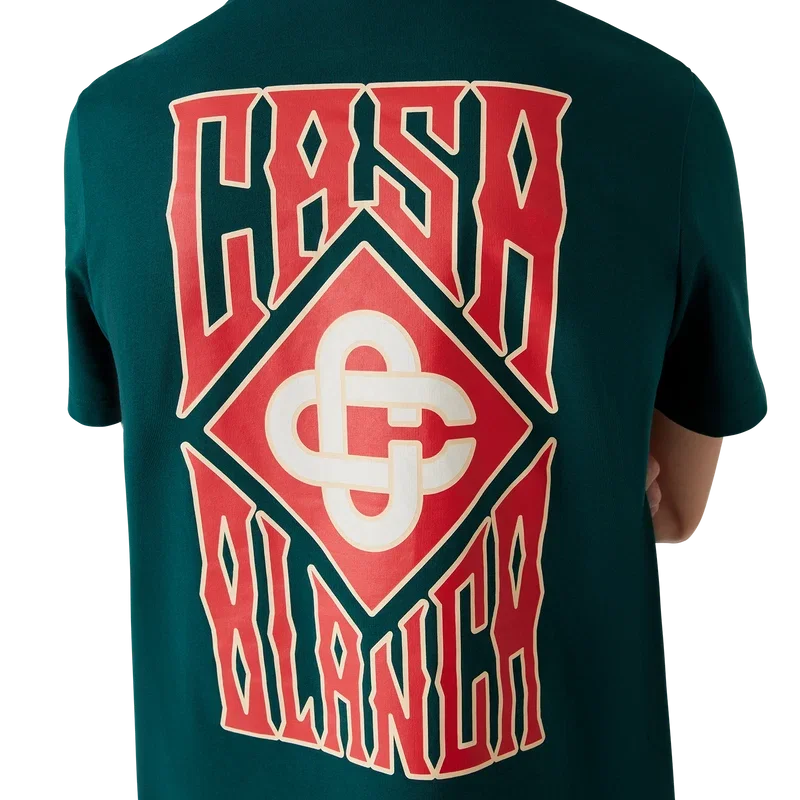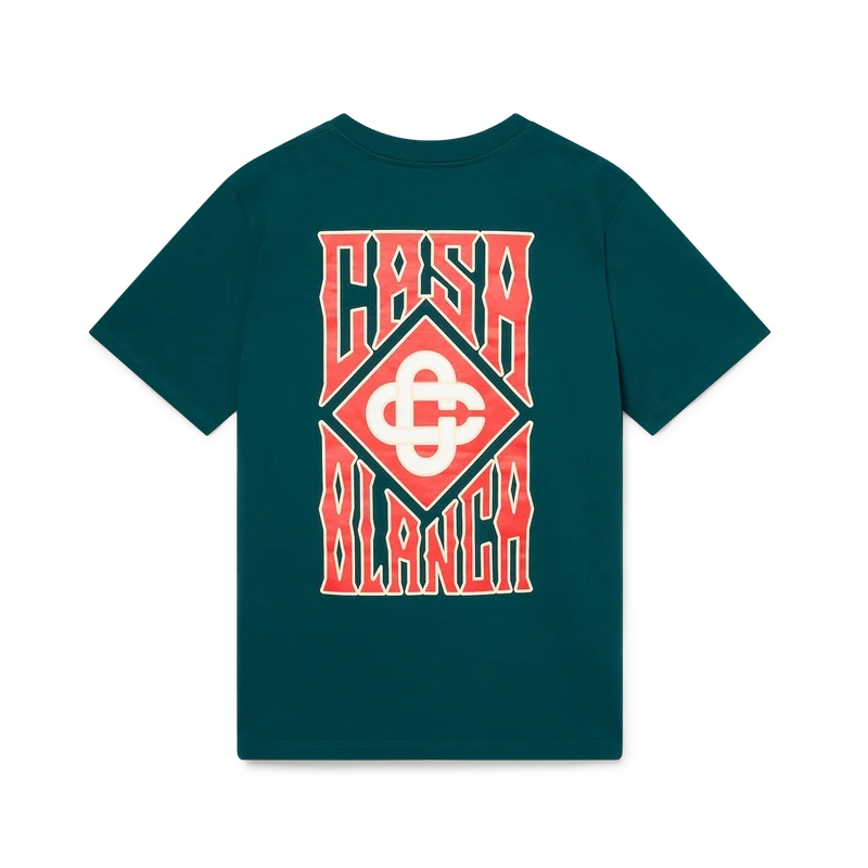 Tricou Gothic Casa Way cu mâneci scurte, imprimat, confecționat din bumbac organic și prezintă logo-ul casei suprapus, realizat cu tipografie gotică, precum și logo-ul diamant caracteristic. Completat cu guler rotund clasic.