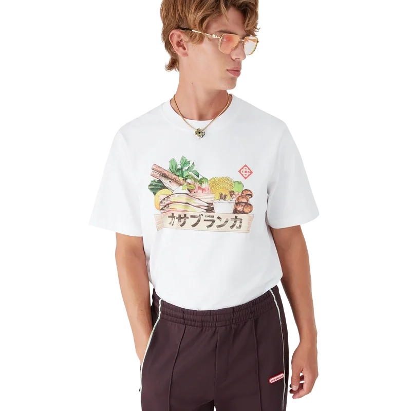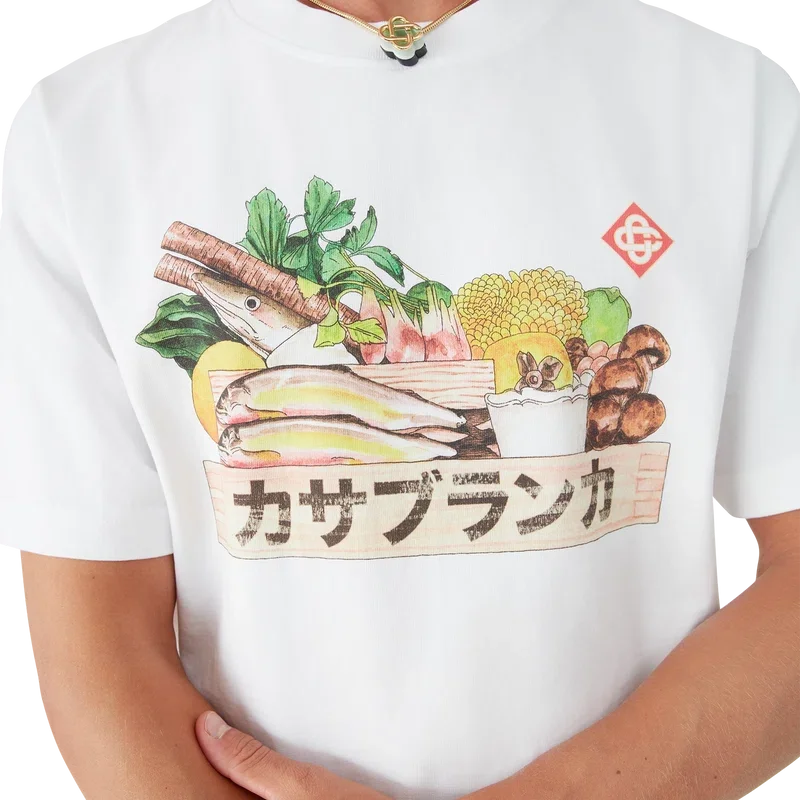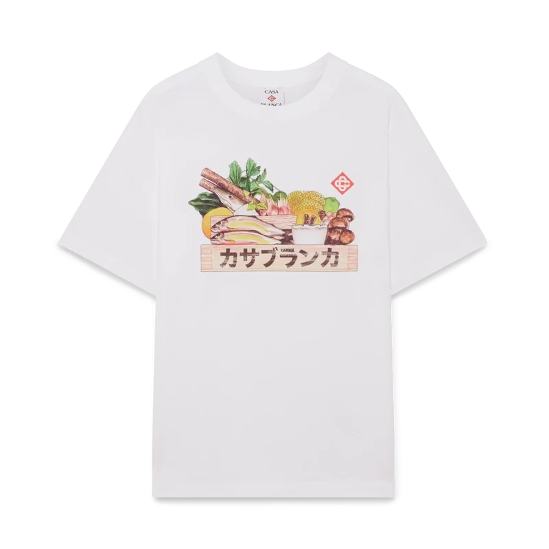 Tricoul Ingredients este un model cu mâneci scurte și imprimeu, care prezintă o grafică sezonieră ce reflectă semnificația pe care o are mâncarea în Japonia și importanța acordată ingredientelor naturale în forma lor brută, confecționat din bumbac organic. Completat cu un guler rotund clasic.
