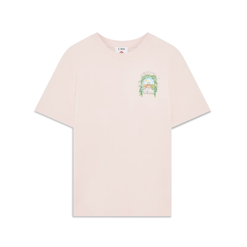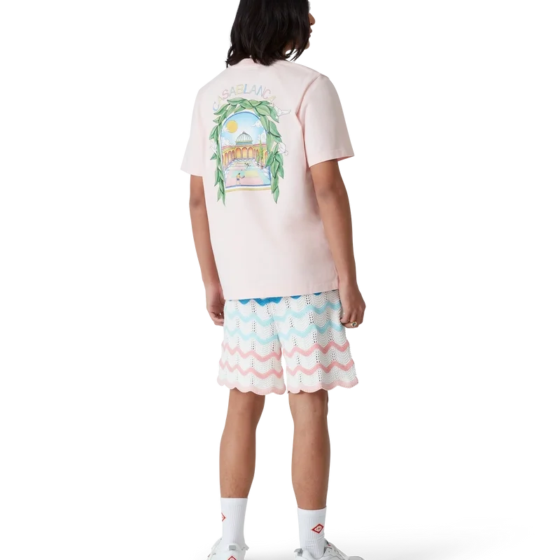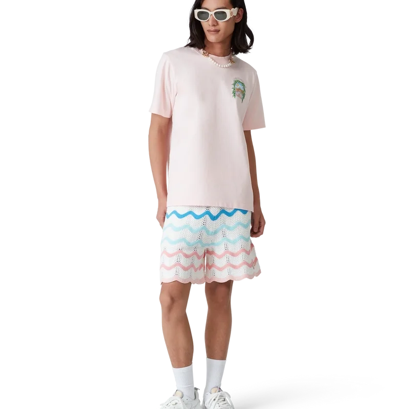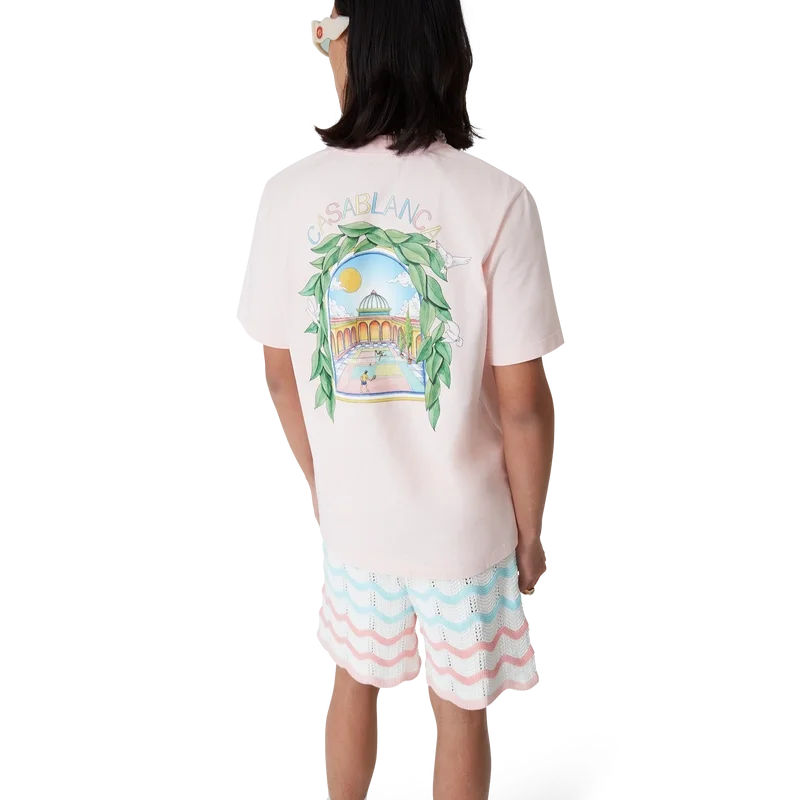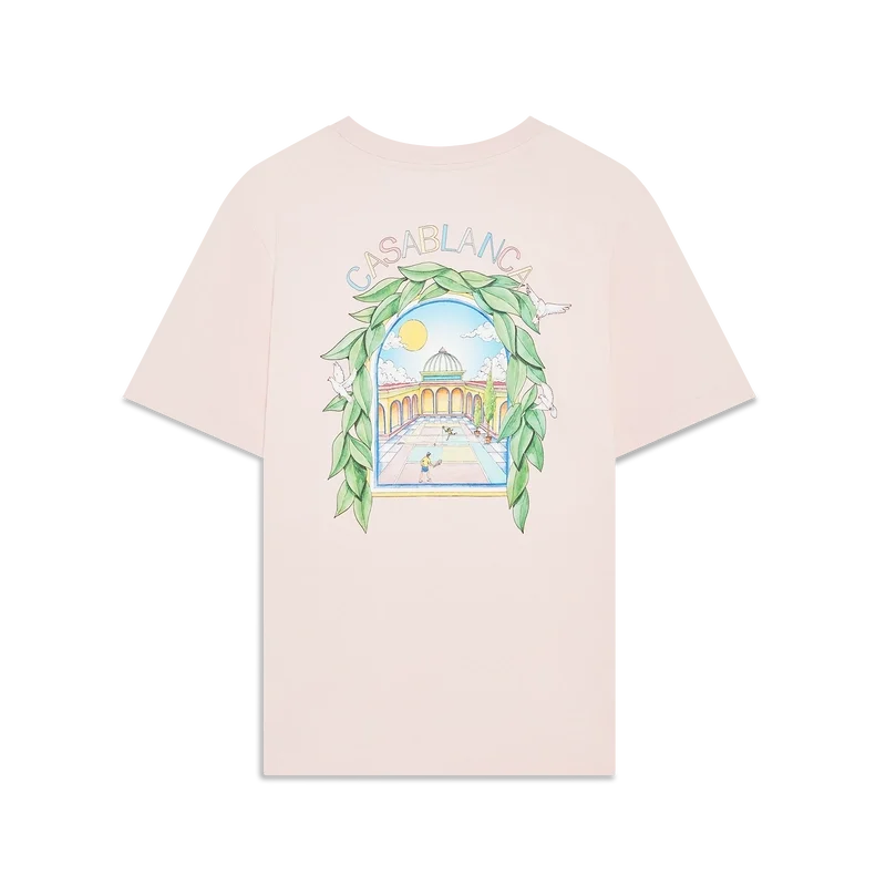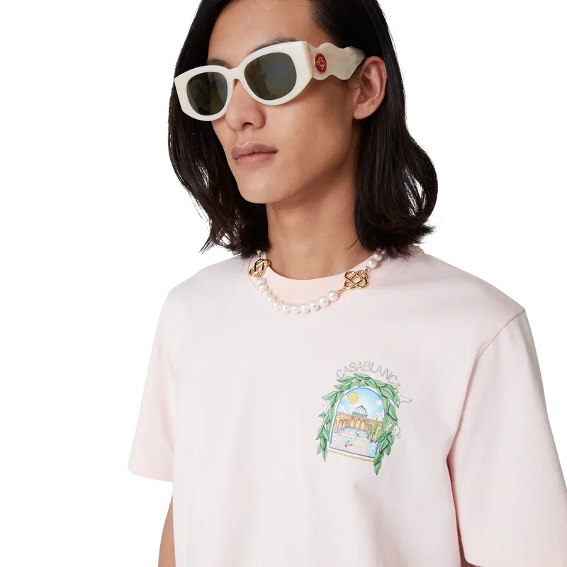 Tricoul L’arche De Tennis este un model rafinat, cu mâneci scurte și imprimeu, care prezintă grafica sezonieră a casei de modă, cu elemente de design inspirate din arc, natură, arhitectură și tenis. Are guler rotund clasic și o croială lejeră.