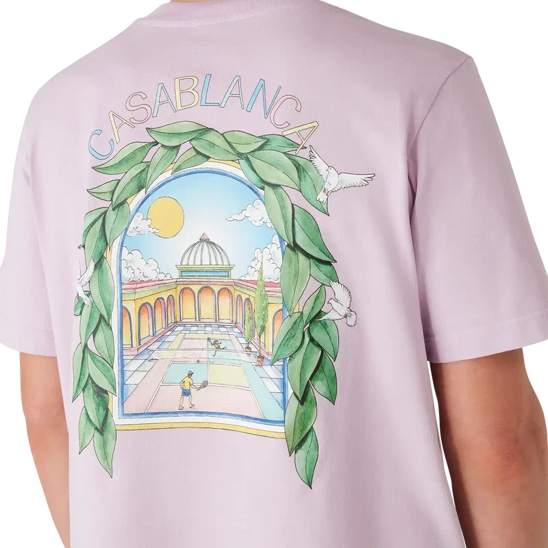Tricoul L’arche De Tennis este un model rafinat, cu mâneci scurte și imprimeu, care prezintă grafica sezonieră a casei, cu elemente de design inspirate de arc, natură, arhitectură și tenis. Este completat de un guler rotund clasic și o siluetă lejeră.<!–