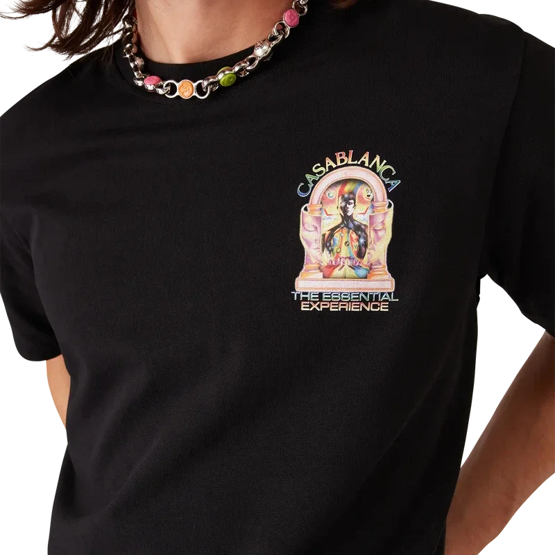 Tricou cu mânecă scurtă și logo L’arche de la The Essential Experience are un design rafinat, cu un imprimeu care explorează lumea muzicii house, rădăcinile sale, ritmul, limbajul vizual și semnificația profundă din spatele versurilor. Are guler rotund clasic și o croială lejeră.