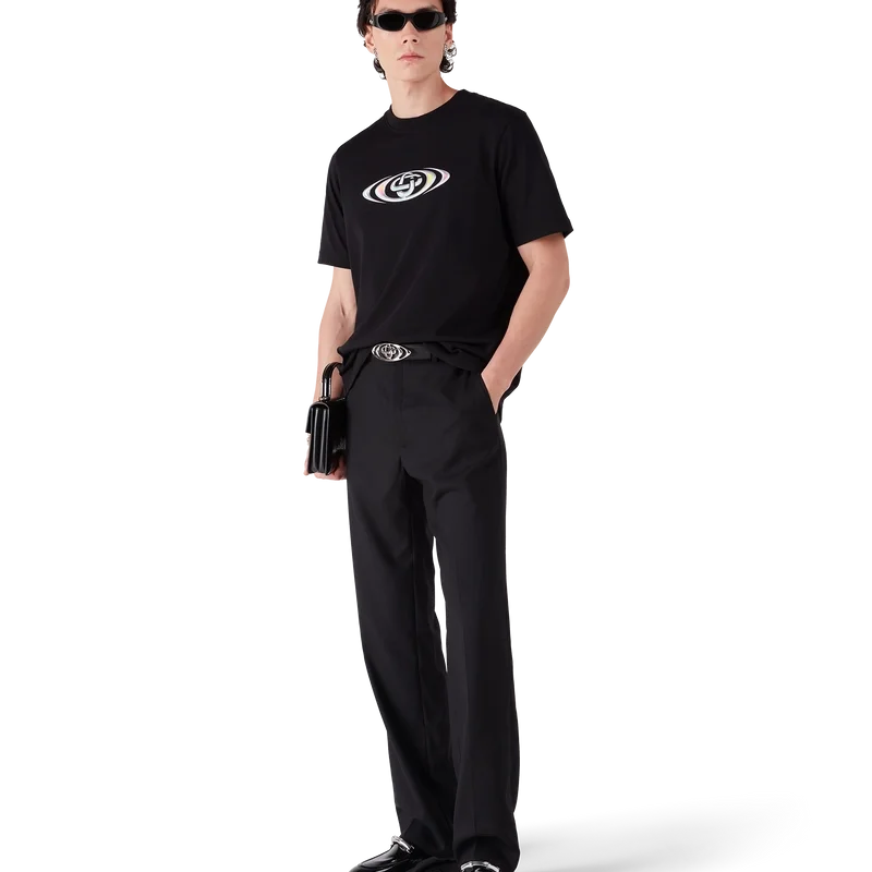 Tricou cu logo Warped este un model rafinat cu mâneci scurte, creat în colaborare cu Martin Naumann pentru a realiza opere de artă unice cu efecte de gradient și textură, finisat cu logo-ul Warped al casei de modă pentru a crea un amestec de semitonuri și efecte asemănătoare sticlei. Completat cu un guler rotund clasic.