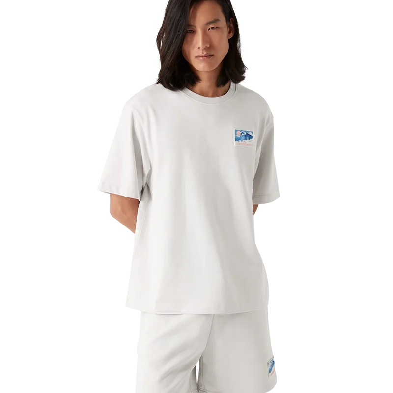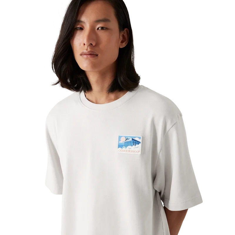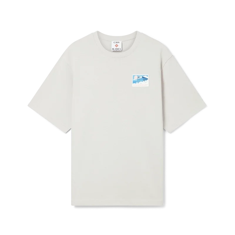 Tricoul Greek Temple este un model cu mâneci scurte, confecționat din țesătură de bumbac organic. Completat cu un patch din cauciuc care prezintă opera de artă sezonieră a casei, inspirată de studiul continuu al frumuseții clasice și al farmecului contemporan al Greciei Antice, și cu un guler rotund clasic.
