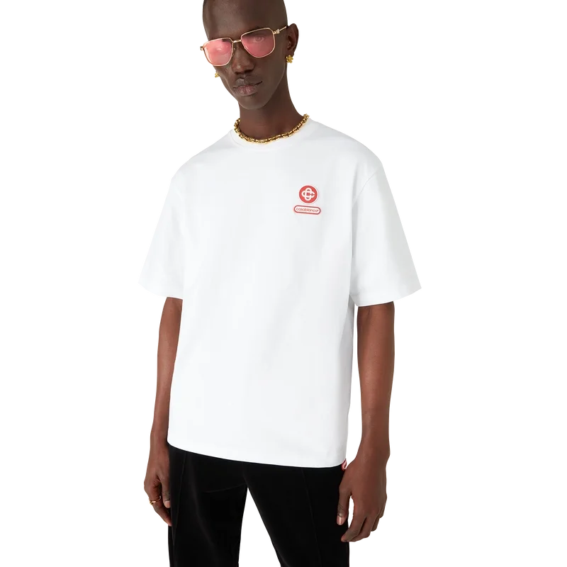 Tricou cu mâneci scurte și patch cu logo este confecționat din bumbac organic, având logo-ul interconectat Cc, semnătura casei. Completat cu un patch cu logo Casablanca japonez pe spate și un guler clasic rotund.