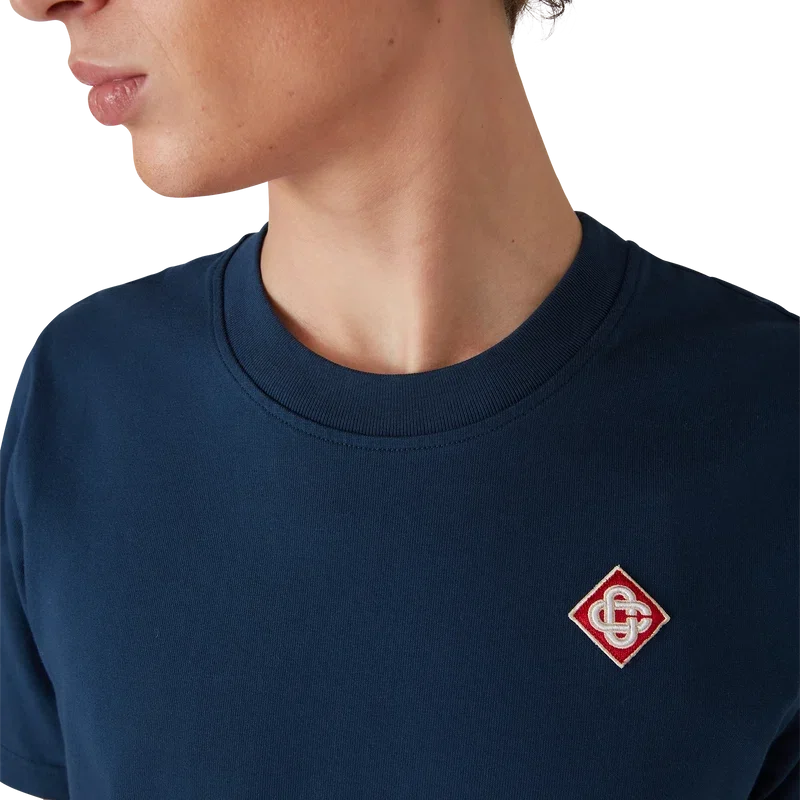 Tricou cu logo-ul Diamond este un model cu mâneci scurte din bumbac organic, care prezintă patch-ul cu logo-ul Diamond, semnătura casei, pe partea stângă a pieptului. Finisat cu guler rotund clasic și etichetă cu marca Casablanca.