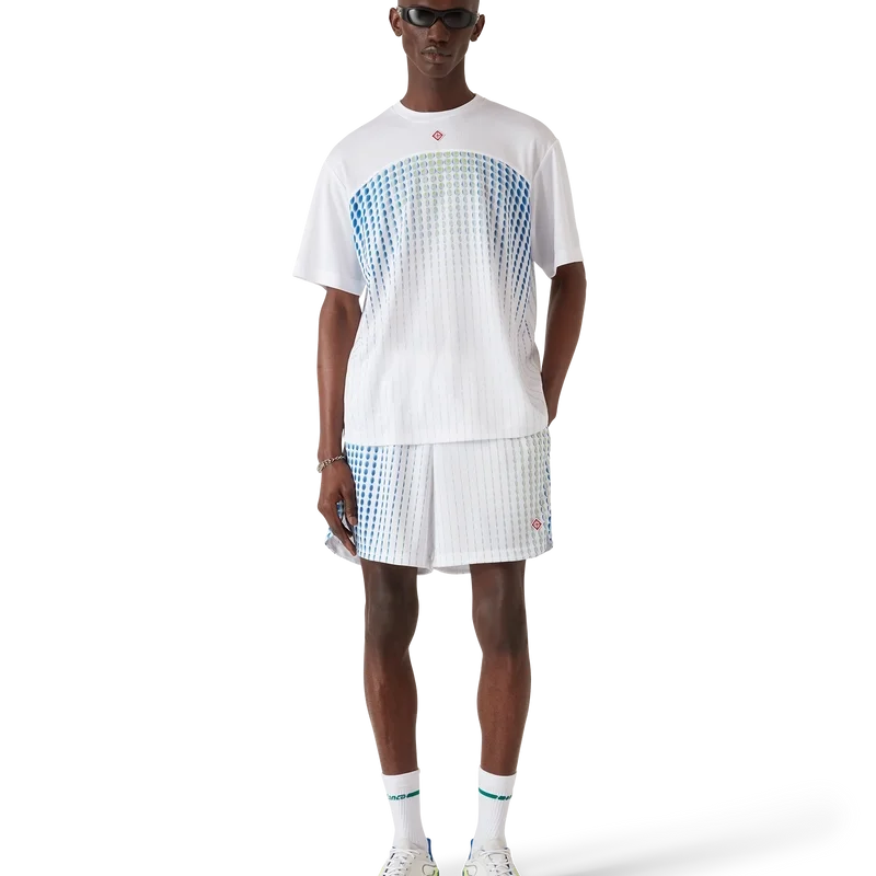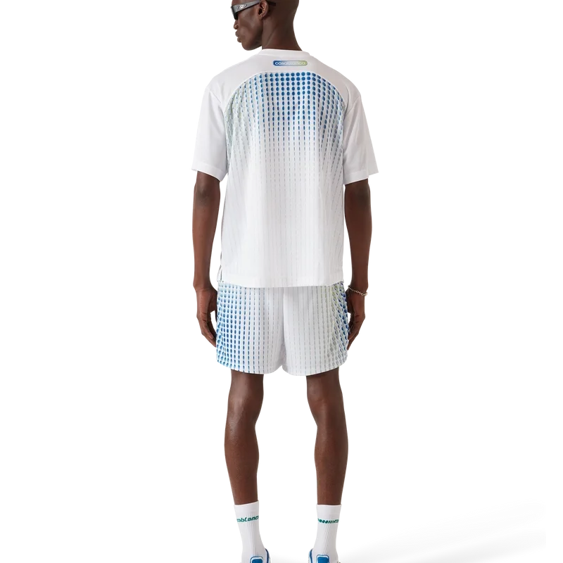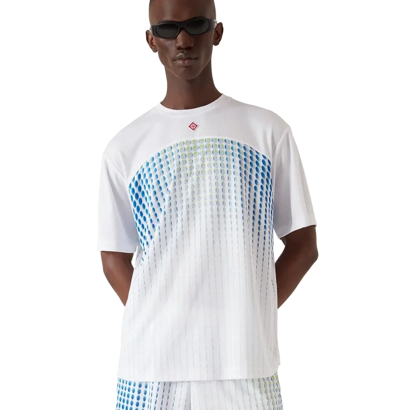 Tricou cu mâneci scurte Tennis Tech are un design imprimat, fiind confecționat din plasă groasă Birdseye, cu un panou la umăr. Completat cu guler rotund și o siluetă relaxată.