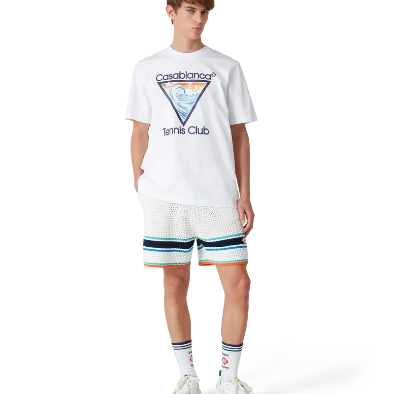 Tricoul Tennis Club Icon este un model cu mâneci scurte, imprimat, confecționat din bumbac organic, care prezintă o interpretare sezonieră a graficii noastre emblematice Tennis Club Icon, cu elemente de design inspirate din natură, arhitectură și tenis. Completat cu un guler rotund clasic.