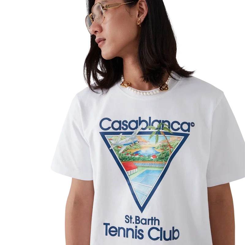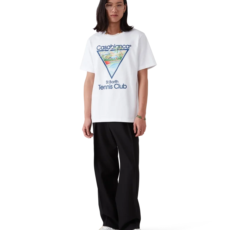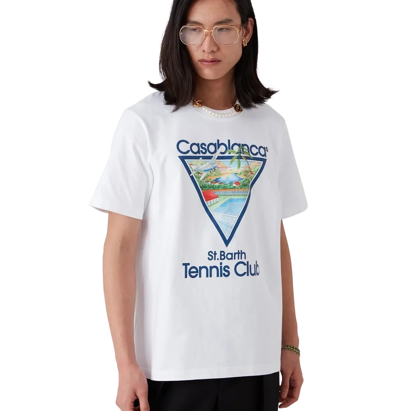 Tricoul Tennis Club Icon este un model cu mâneci scurte, imprimat, confecționat din bumbac organic și prezintă o interpretare sezonieră a graficii noastre emblematice Tennis Club Icon, cu elemente de design inspirate din natură, arhitectură și tenis. Completat cu un guler rotund clasic.
