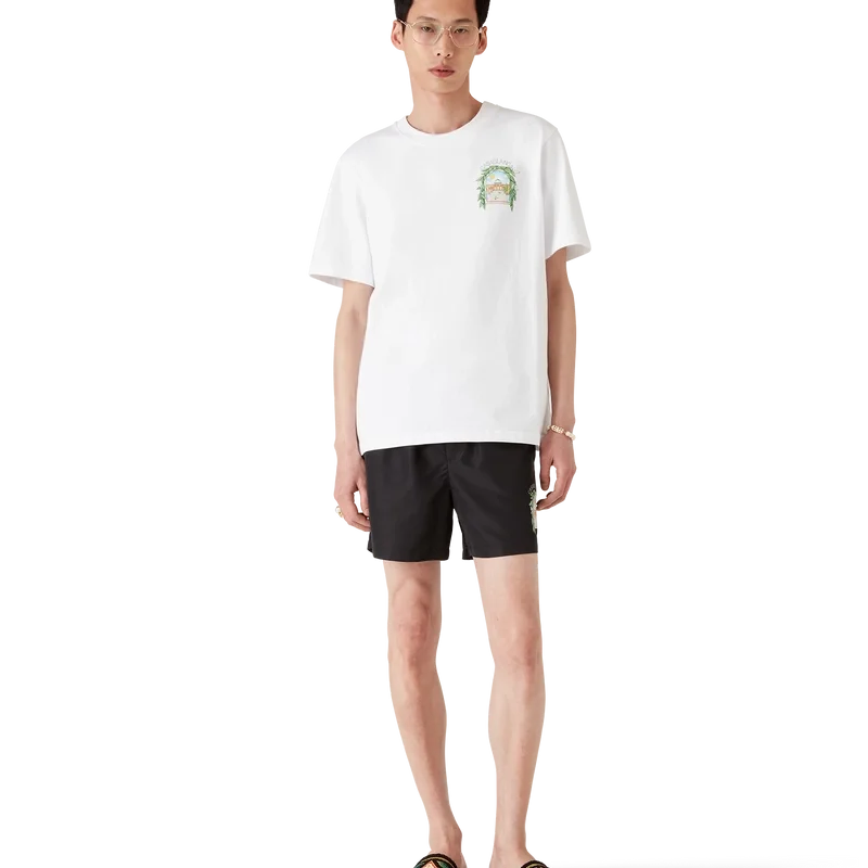 Tricoul L’arche De Tennis are pantaloni scurți și prezintă un imprimeu serigrafic de sezon în care fluxul liber al naturii se întâlnește cu structura designului creat de om – arcul, un simbol abstract al forței. Completat cu un guler rotund clasic.